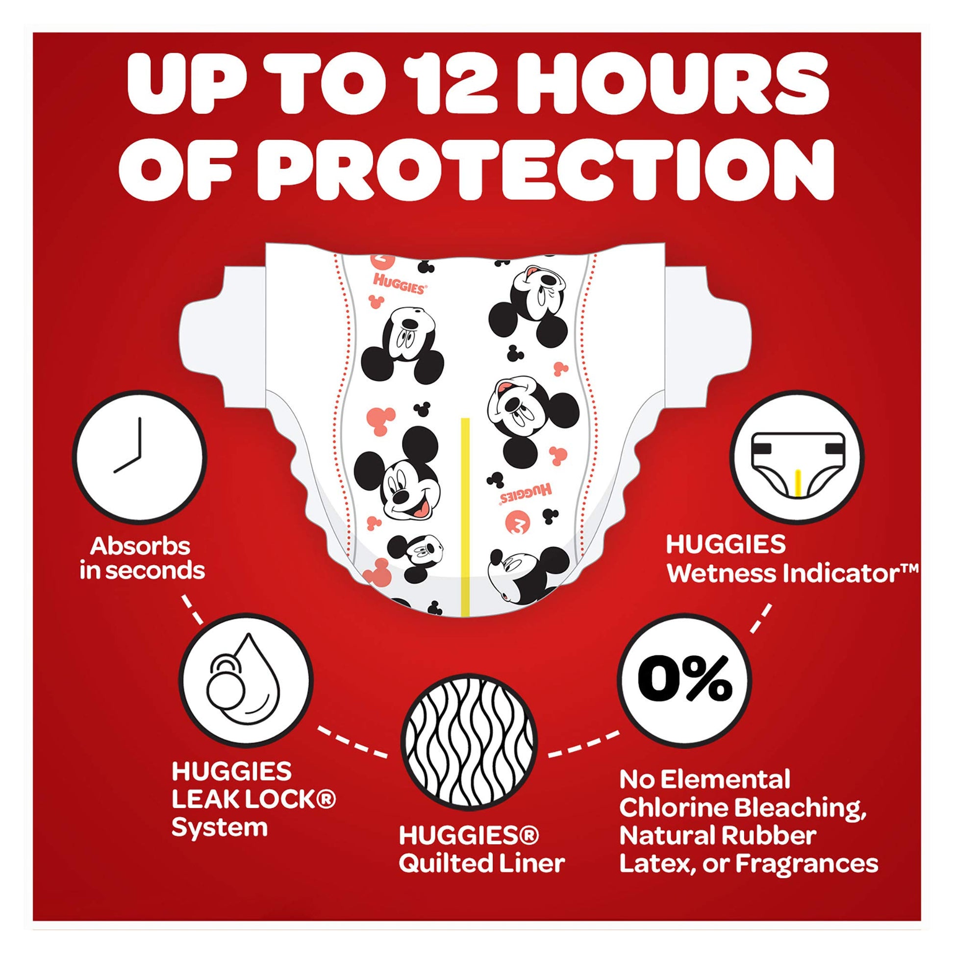 - Q: Do these diapers have any fun designs? A: Yes, Huggies Snug & Dry diapers feature fun and exclusive Disney Mickey Mouse designs.