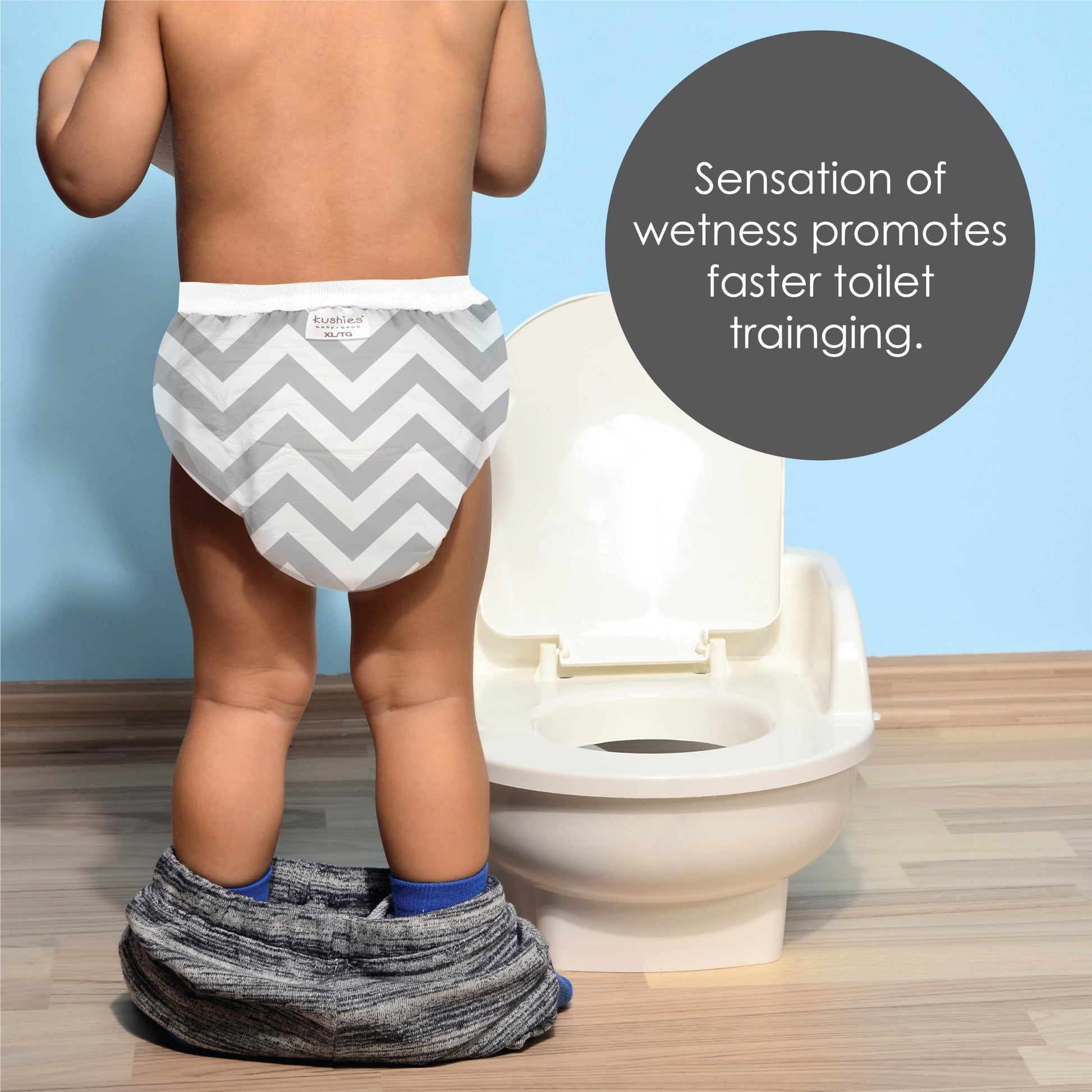 - Q: How do these training pants help with toilet training? A: The cotton flannel inner layer allows the child to feel the sensation of wetness, which can promote awareness and encourage toilet training.