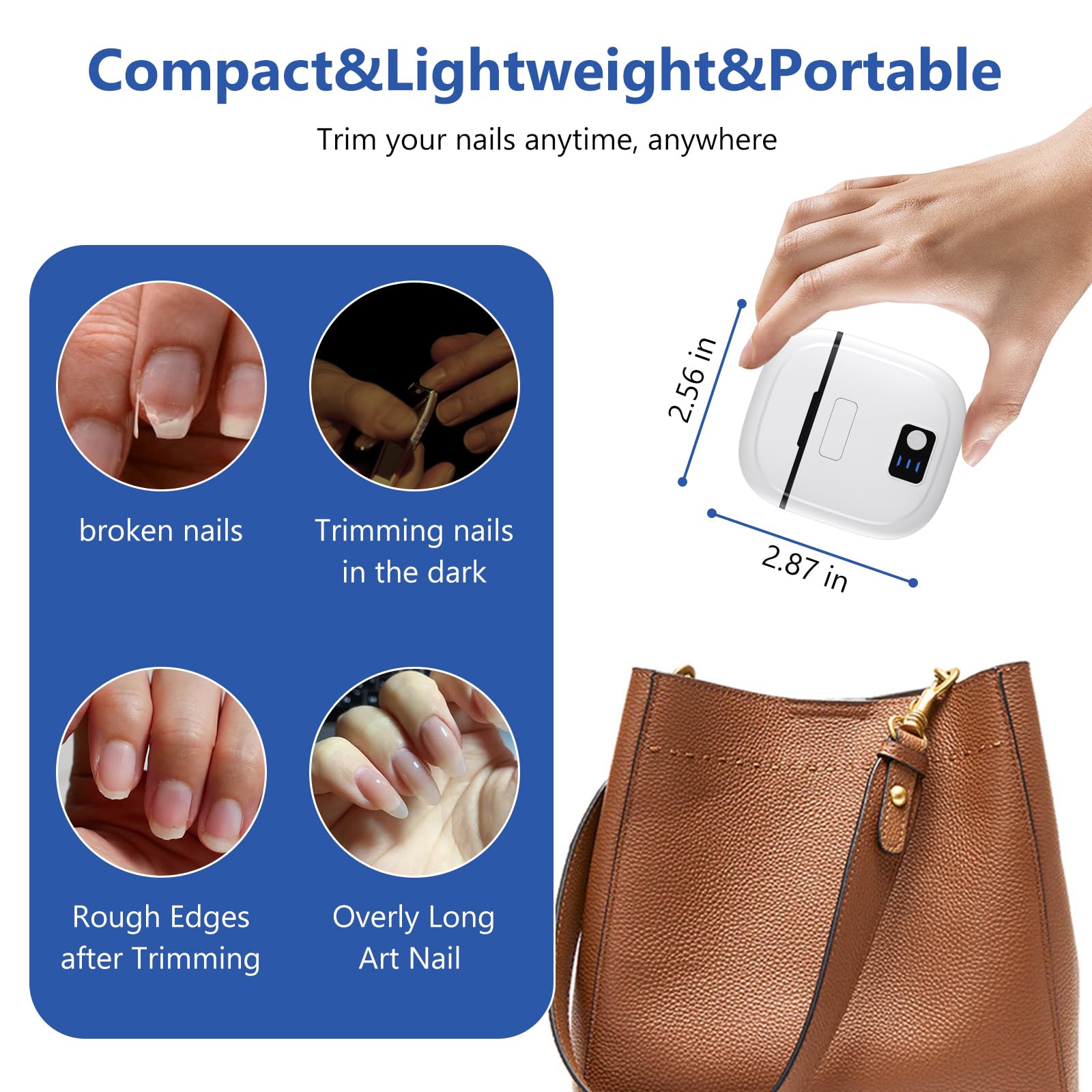 - Q: Is the electric nail clipper easy to carry for travel? A: Yes, the electric nail clipper is lightweight and compact, measuring approximately 2.56 by 2.87 by 0.8 inches, making it convenient to carry in your everyday bag.