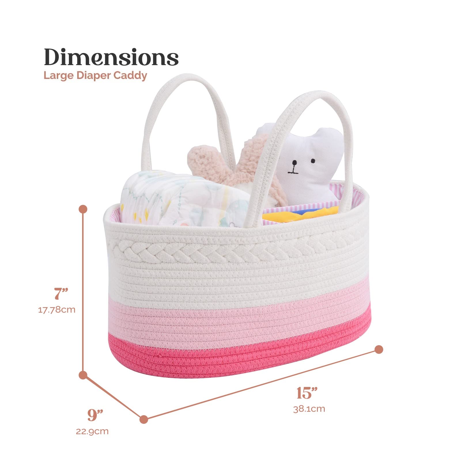 - Q: Is the diaper caddy easy to clean? A: While specific cleaning instructions are not provided, cotton rope can typically be spot cleaned or wiped down with a damp cloth. Always check care labels for specific guidance.