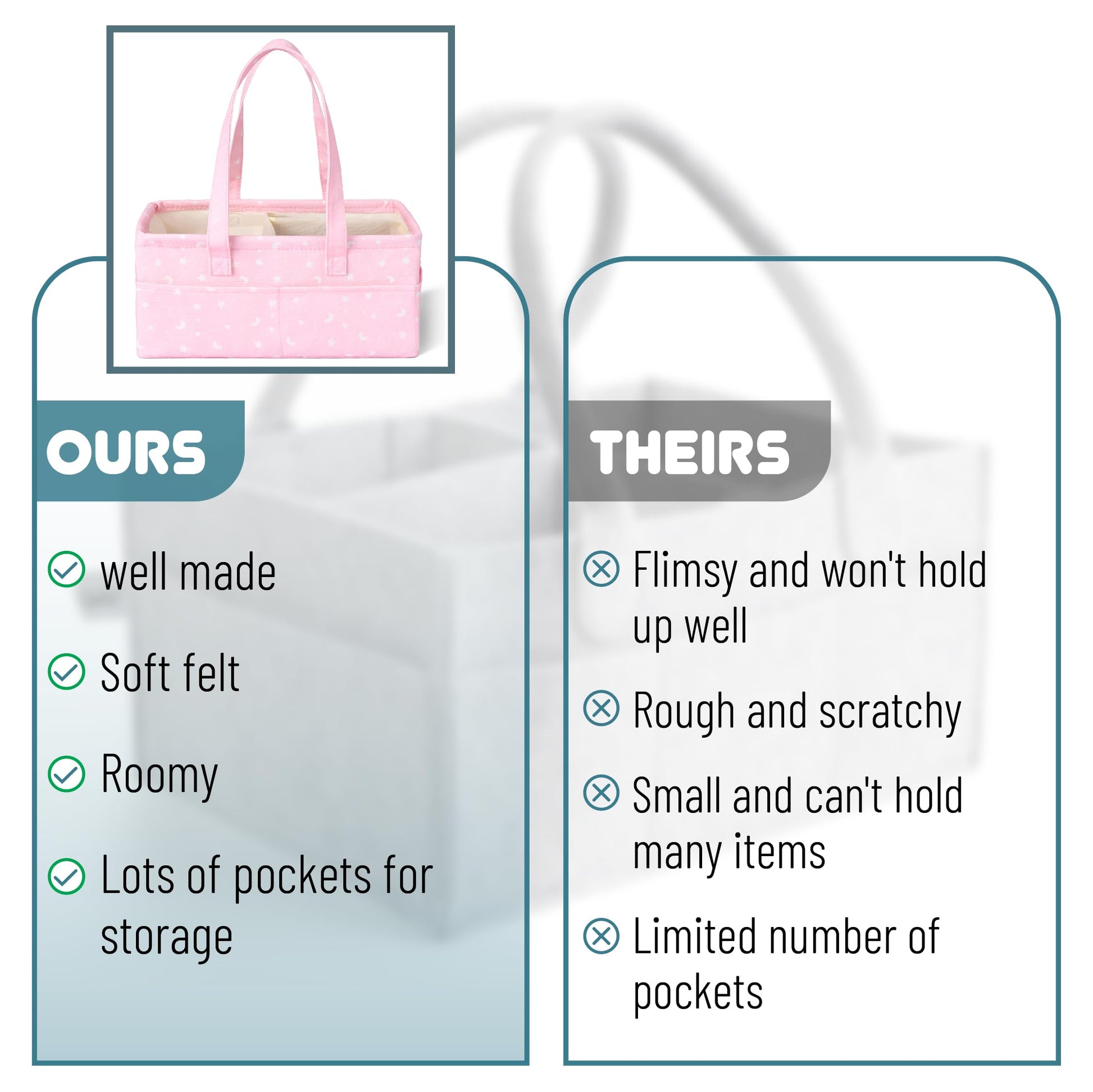 - Q: What design options are available for the diaper caddy? A: The Mr. Pen diaper caddy is available in a charming pink fabric with moon and star patterns, perfect for a nursery theme.