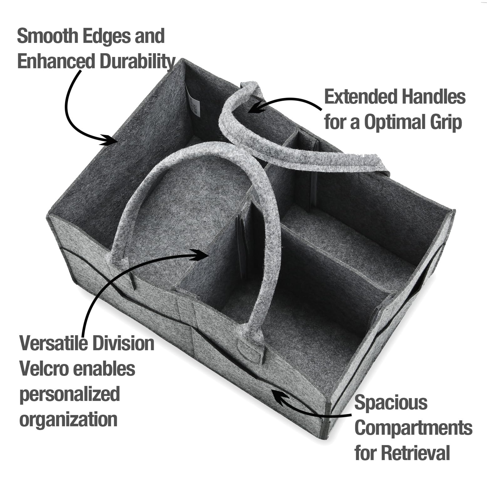 • Q: What colors does the diaper caddy come in? A: The caddy features a stylish gray design that complements various nursery decors.