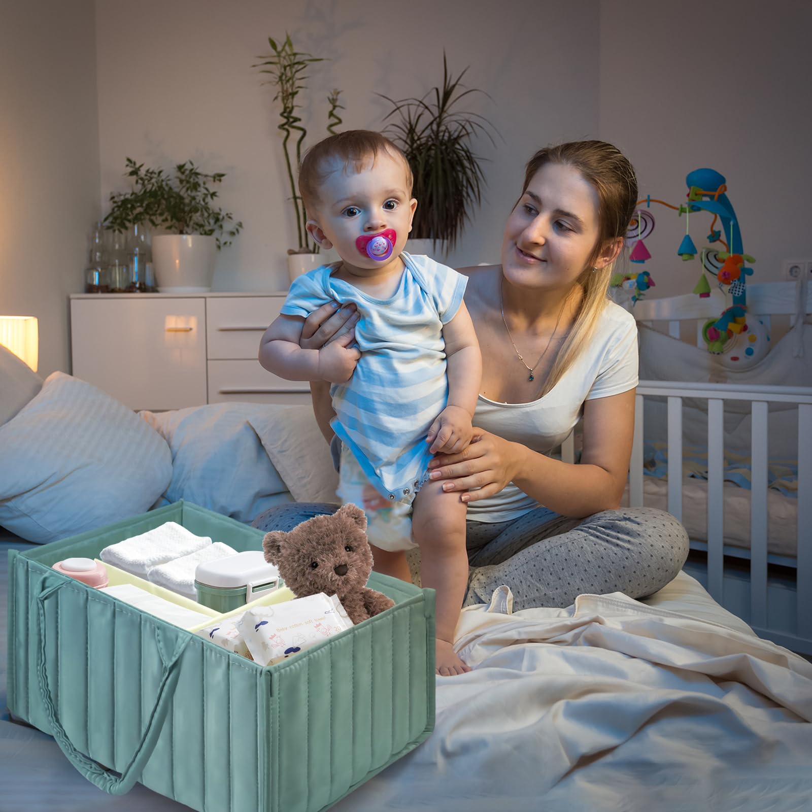 - Q: Is this diaper caddy portable? A: Yes, the caddy features a lightweight and foldable design with a handle, making it easy to carry and travel with.