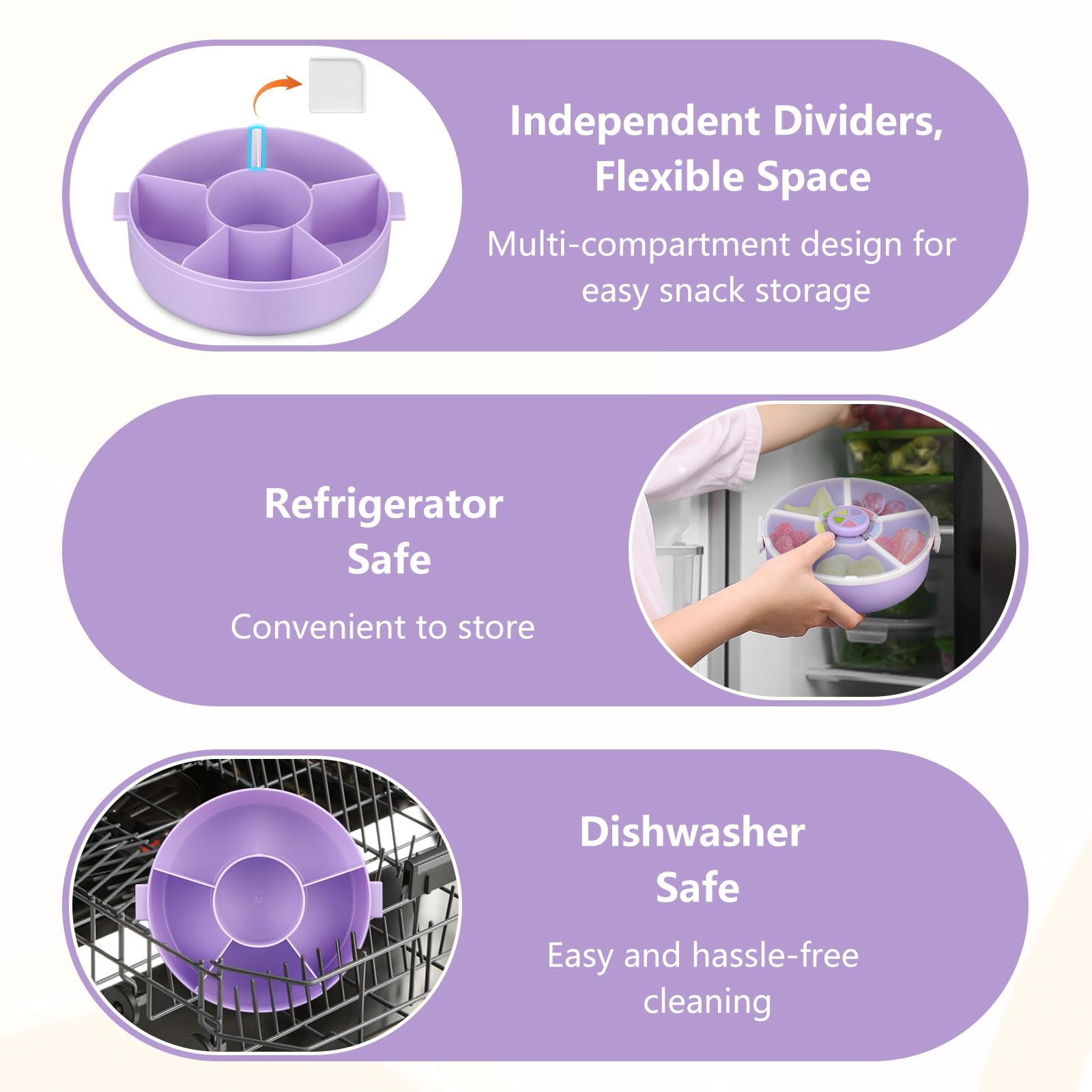 - Q: How many compartments does the Snack Spinner have? A: The Snack Spinner features five compartments for organizing snacks.