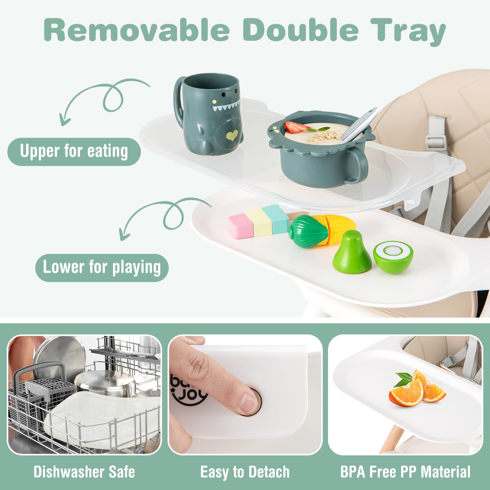 - Q: Is the tray of the high chair removable and safe for dishwashers? A: Yes, the high chair features a removable double tray that is made of BPA-free PP material and is dishwasher safe.