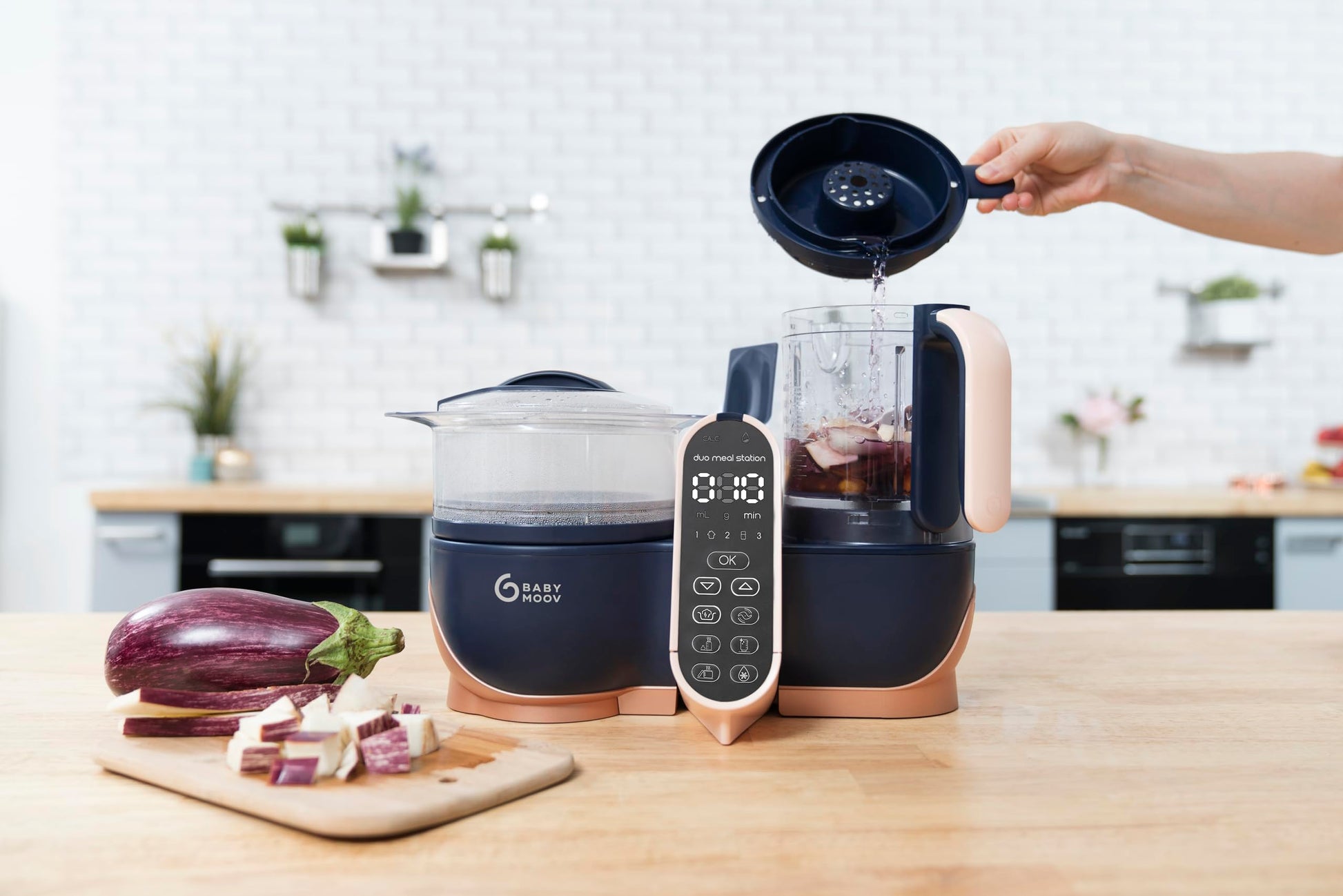 - Q: How does the Babymoov Duo Meal Station XL preserve nutrients in food? A: The Babymoov Duo Meal Station XL preserves nutrients by cooking ingredients separately and using a steam juicer to maintain vitamins and natural flavors.