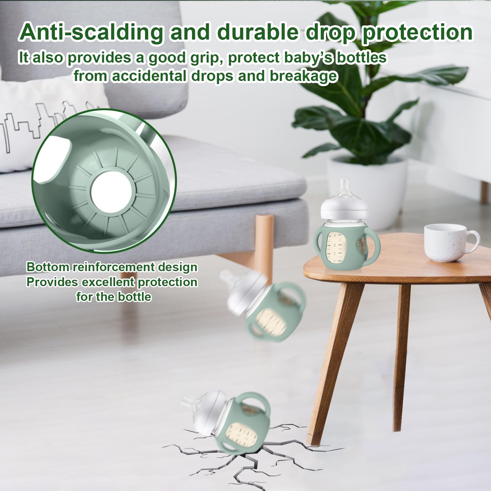 - Q: Can I use these sleeves if my bottle is warm? A: Yes, the silicone sleeves are designed to be anti-scalding, providing a safe grip even if the glass bottle is warm from heating milk or formula.