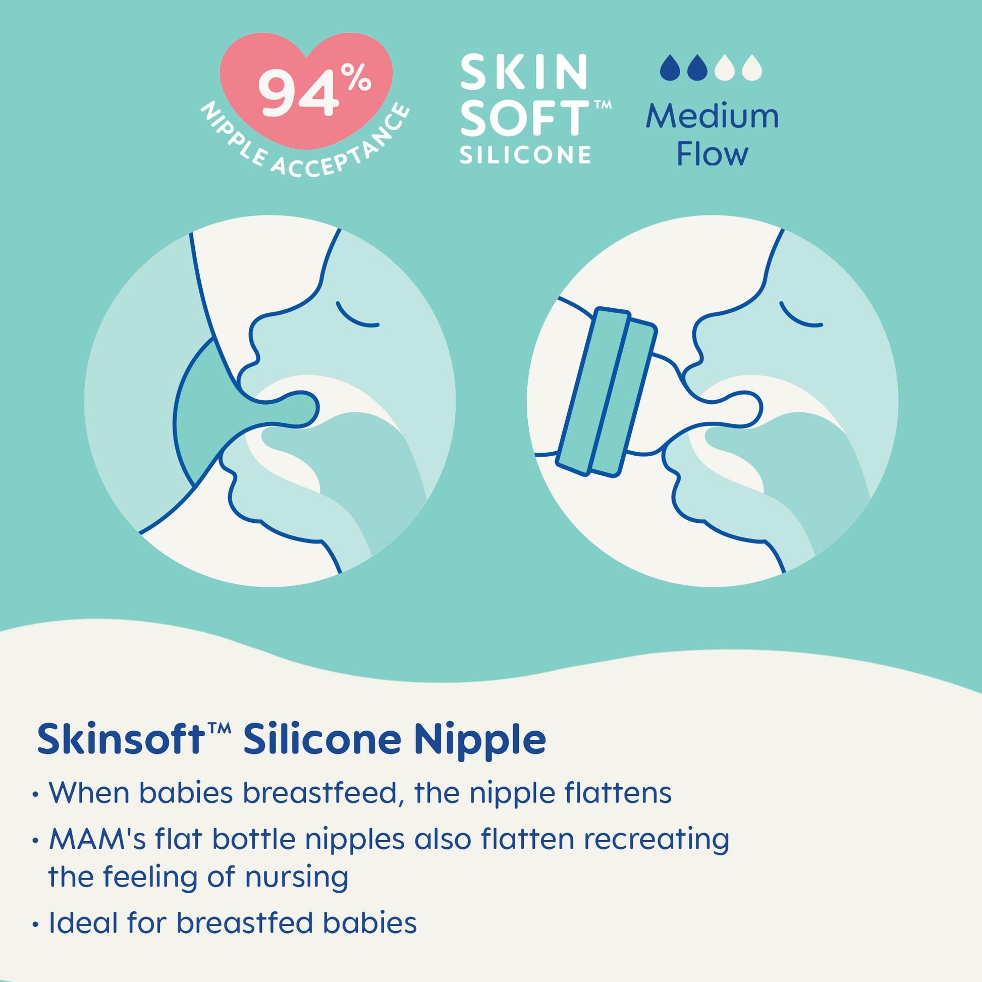 - Q: What materials are used in MAM baby bottles? A: MAM Feel Good glass baby bottles are made from high-quality glass and the nipples are made from SkinSoft silicone, ensuring comfort and safety for your baby.