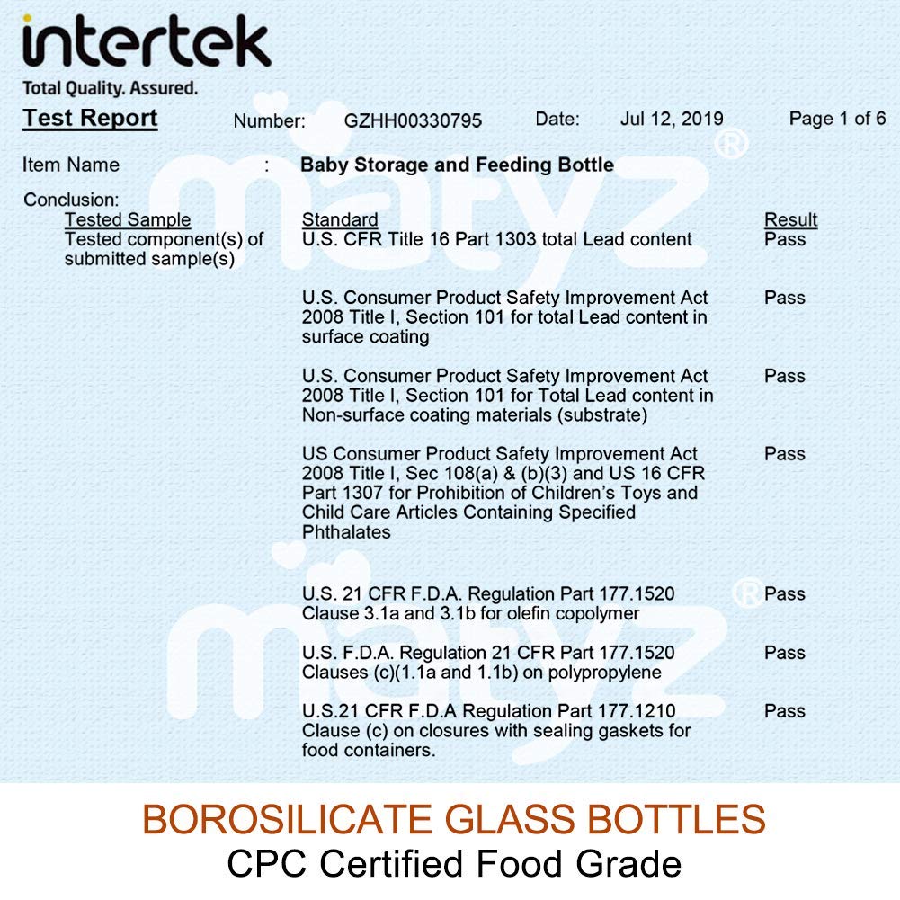 - Q: Are these glass containers safe for freezing breast milk? A: Yes, the Matyz glass containers are freezer safe. However, it is recommended not to exceed 5 ounces of milk in each bottle when freezing.
