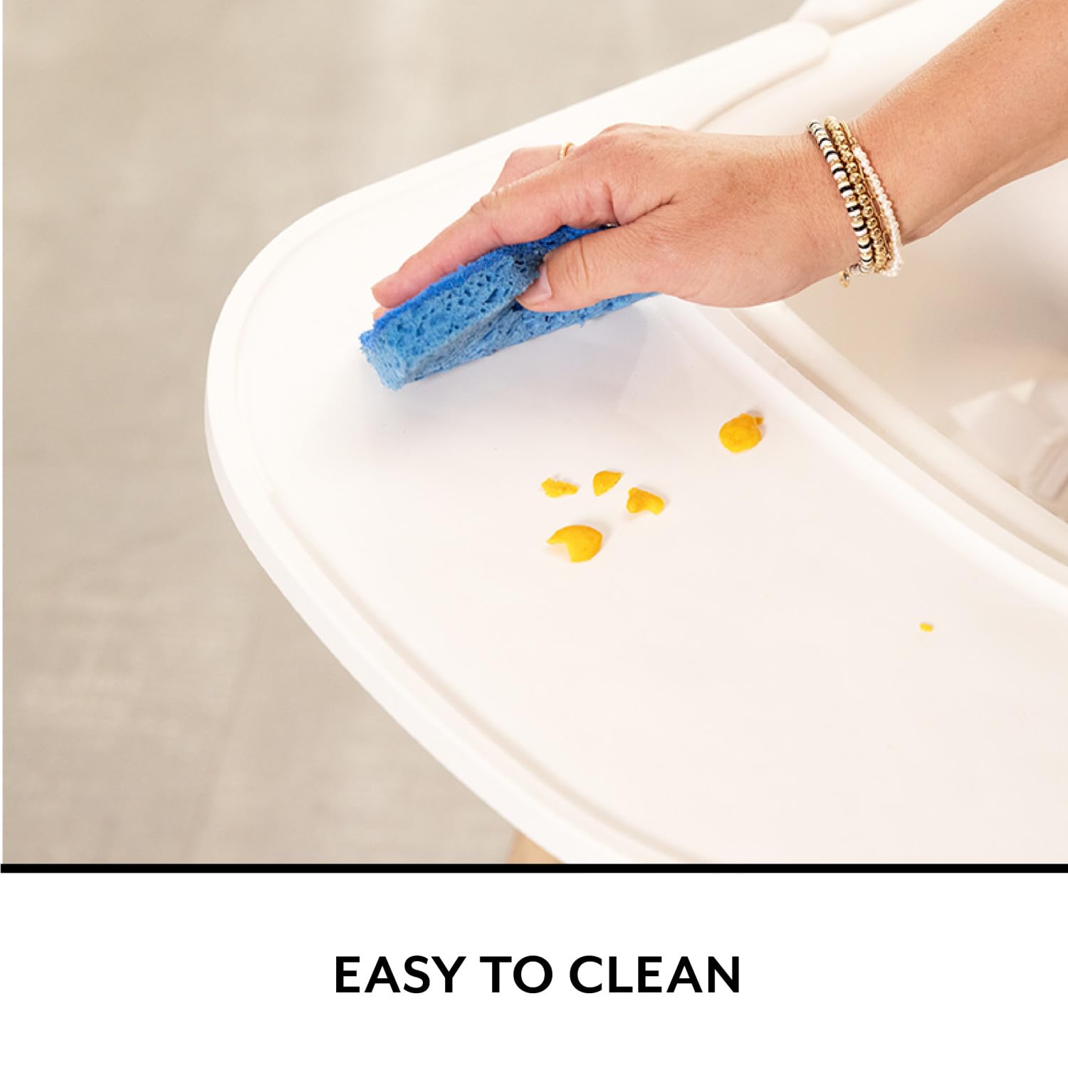 • Q: How do I clean the high chair? A: The high chair has wipeable surfaces for easy cleaning, and the BPA-free tray is removable and dishwasher safe (top rack only) for added convenience.