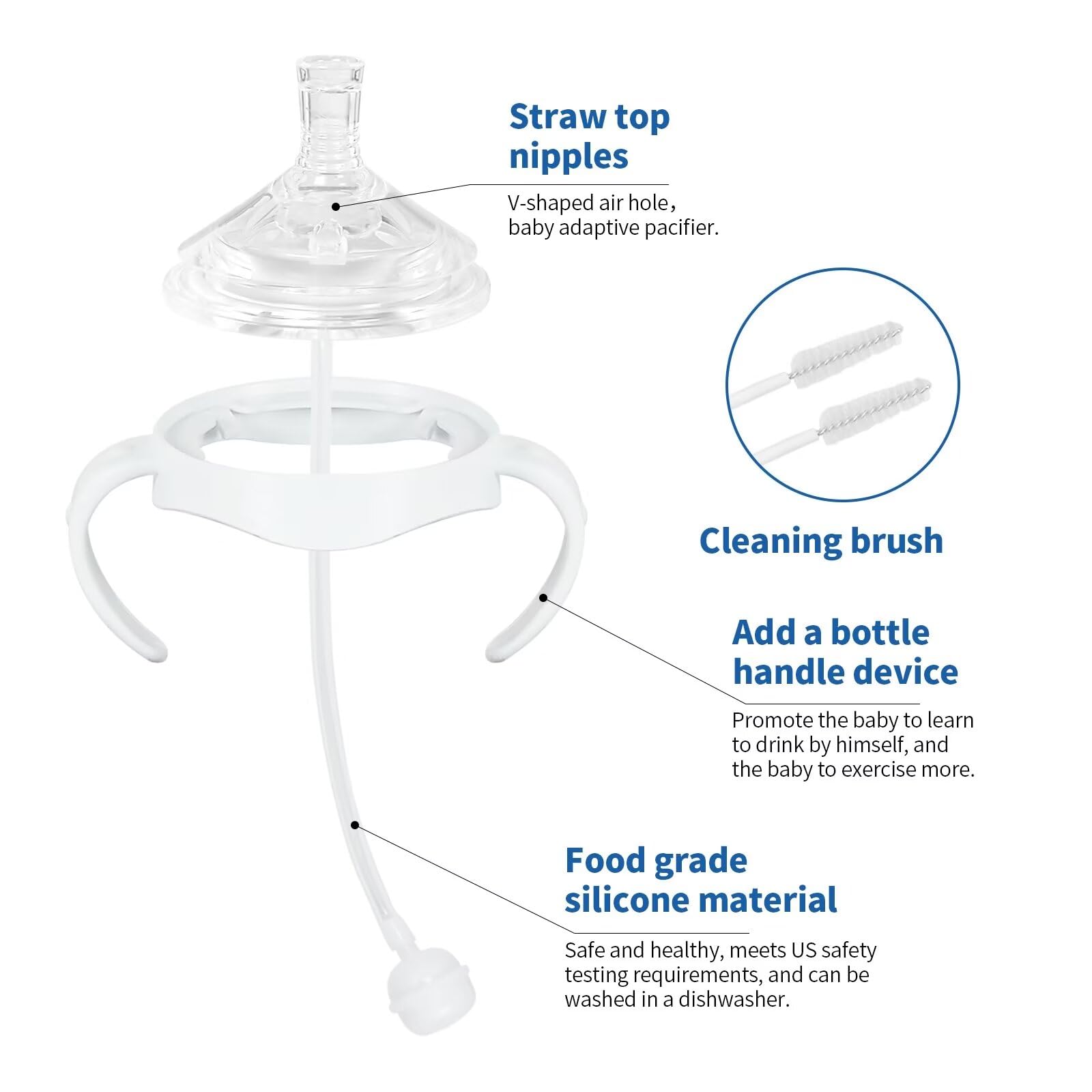 Straw Cup Soft Spout Conversion Kit For Philips Avent Natural Baby Bottle, Bottle Handles And Weighted Straw (2 Pack)