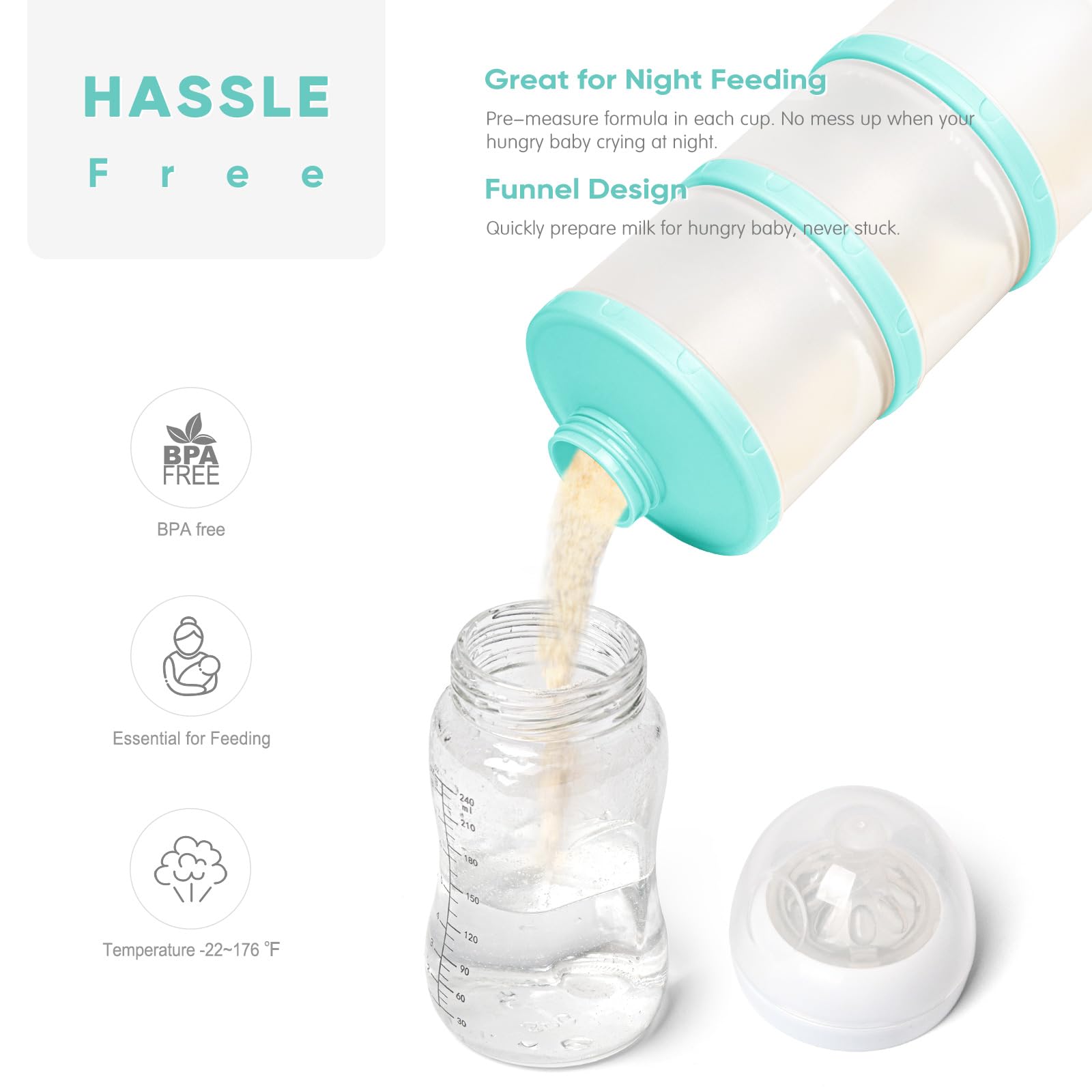 - Q: How does the formula dispenser help during night feedings? A: The dispenser allows you to pre-measure baby formula, making it quick and easy to prepare bottles during night feedings without hassle.