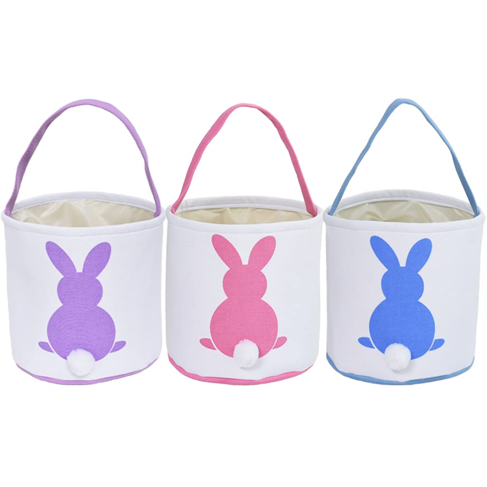 - Q: How many basket bags are included in the package? A: The package includes three Easter bunny basket bags, each in a different color: purple, blue, and pink.