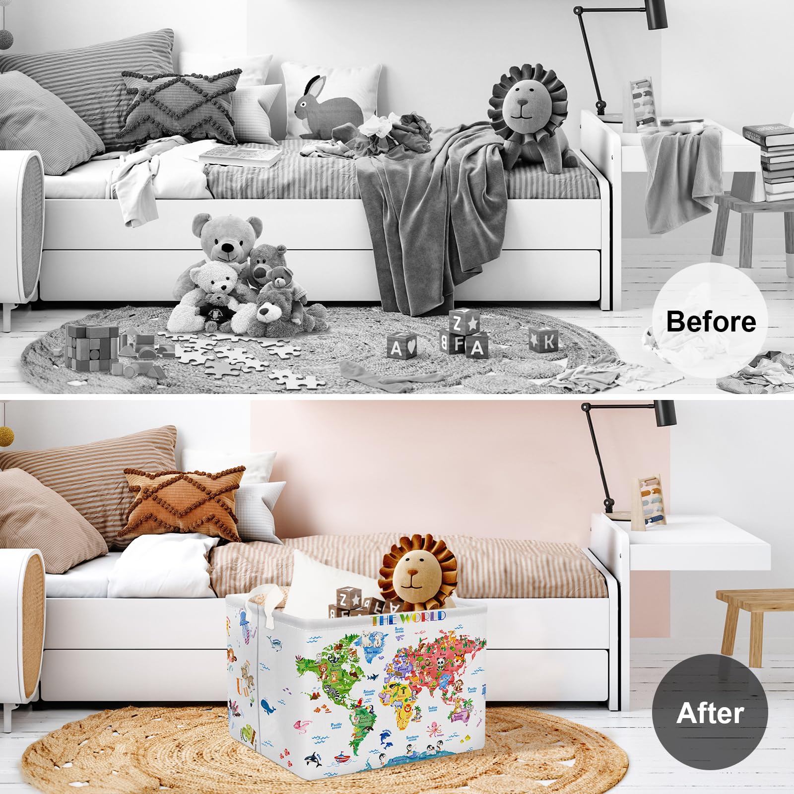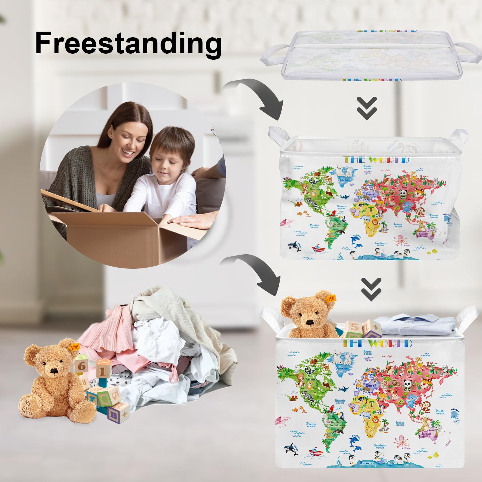 Clastyle Back To School World Map Storage Bin Alphabet Animals Baby Gift Basket Playroom Nursery Kid Toy Basket Organizer Rectan