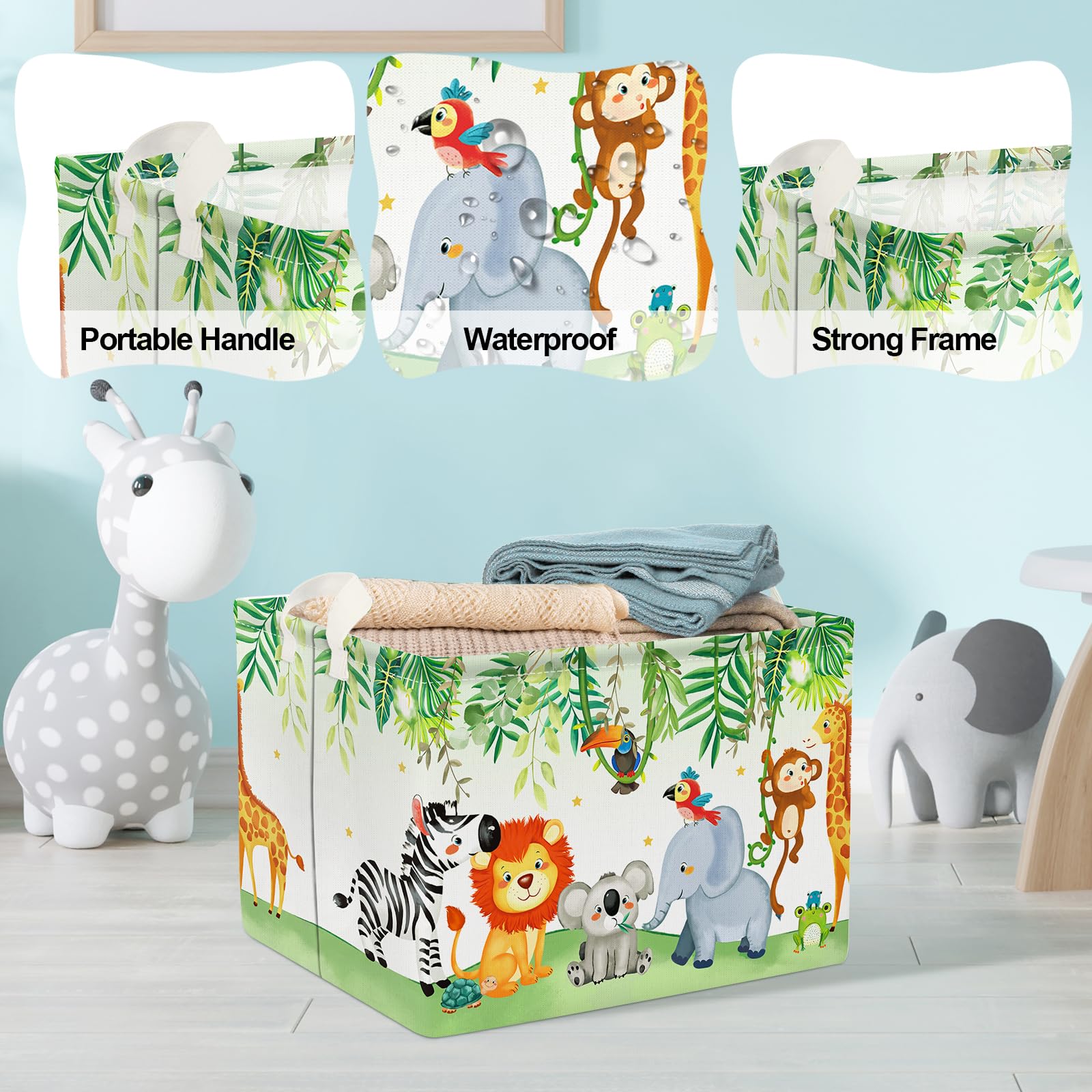 - Q: What are the dimensions of the Clastyle Safari Animal Nursery Decor Kid Basket? A: The dimensions of the basket are 15.7 inches in length, 11.8 inches in width, and 11.8 inches in height.