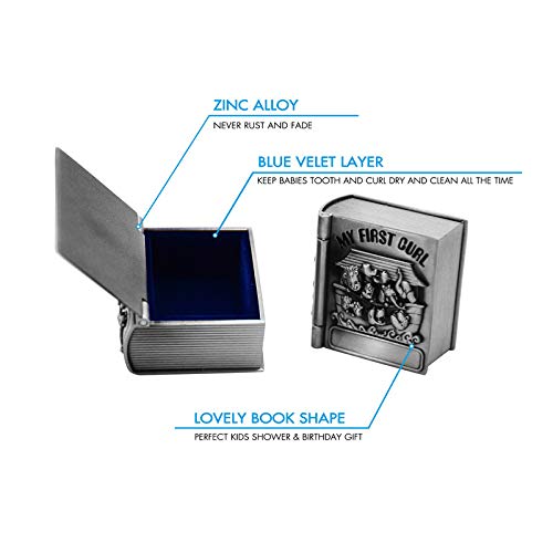 - Q: What is the design of the Keepsake Box like? A: The Keepsake Box features an exquisite handcrafted metallic floral engraved design, shaped like an elephant and a book, with cute words 'My First Curl' and 'My First Tooth'.