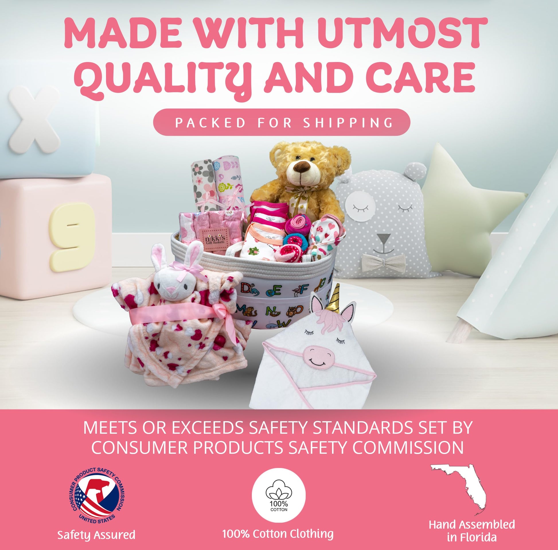 - Q: Are the items in the basket safe for newborns? A: Yes, all products included in the gift basket undergo rigorous lab testing to meet or exceed Consumer Products Safety Commission standards.