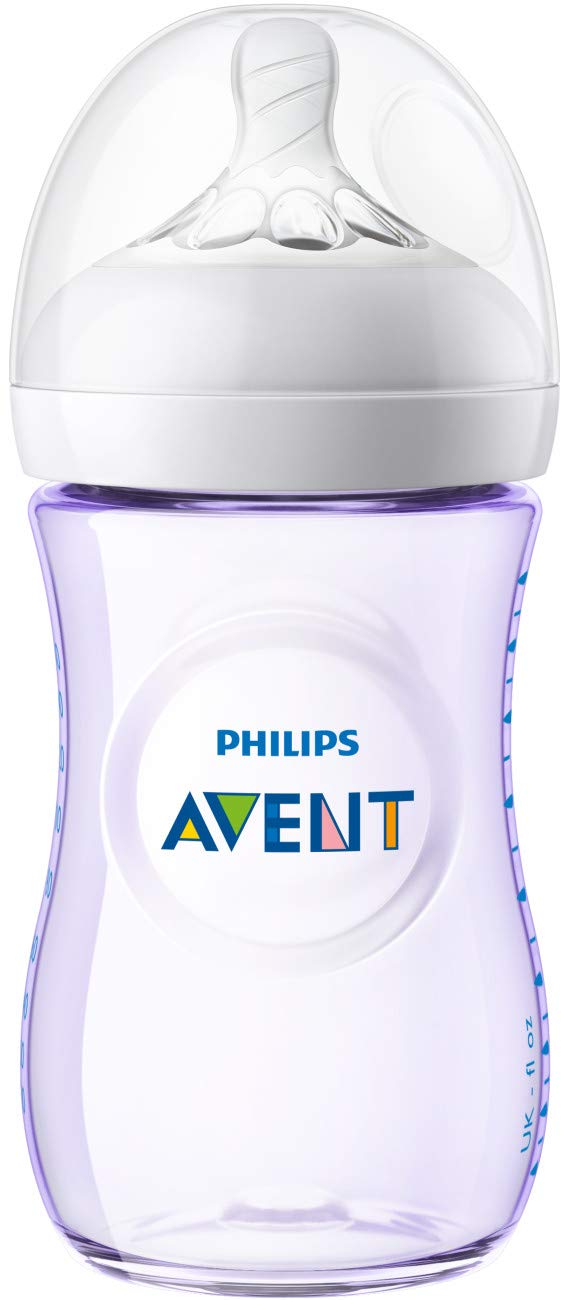 - Q: What is included in the Philips Avent Natural Baby Bottle Purple Gift Set? A: The Philips Avent Natural Baby Bottle Purple Gift Set includes two Natural baby bottles with a capacity of 9 ounces (260 mL) featuring slow flow nipples and bottle caps, along with two ultra air orthodontic pacifiers designed for infants aged 0-6 months.
