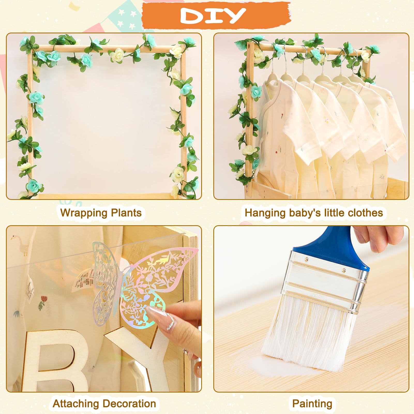 - Q: How can I personalize the baby shower crate? A: The crate includes accessories like green vines, baby clothes hangers, 3D butterfly stickers, random animal stickers, and an acrylic transparent front panel, allowing for creative DIY decoration.