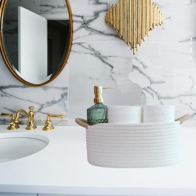 Yimi'S Dream Gift Baskets Empty, Small Basket For Organizing, White Cotton Rope Basket With Handle For Decor, Baby Cat Dog Toy (