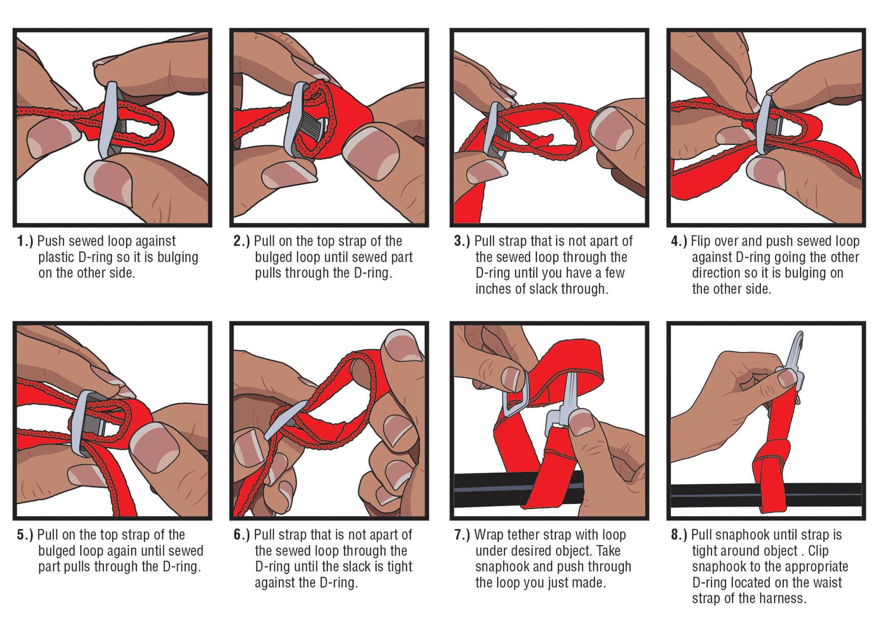 - Q: How do I use the adjustable harness? A: The adjustable harness slips on like a jacket and can be easily attached to shopping carts, booster seats, and high chairs.