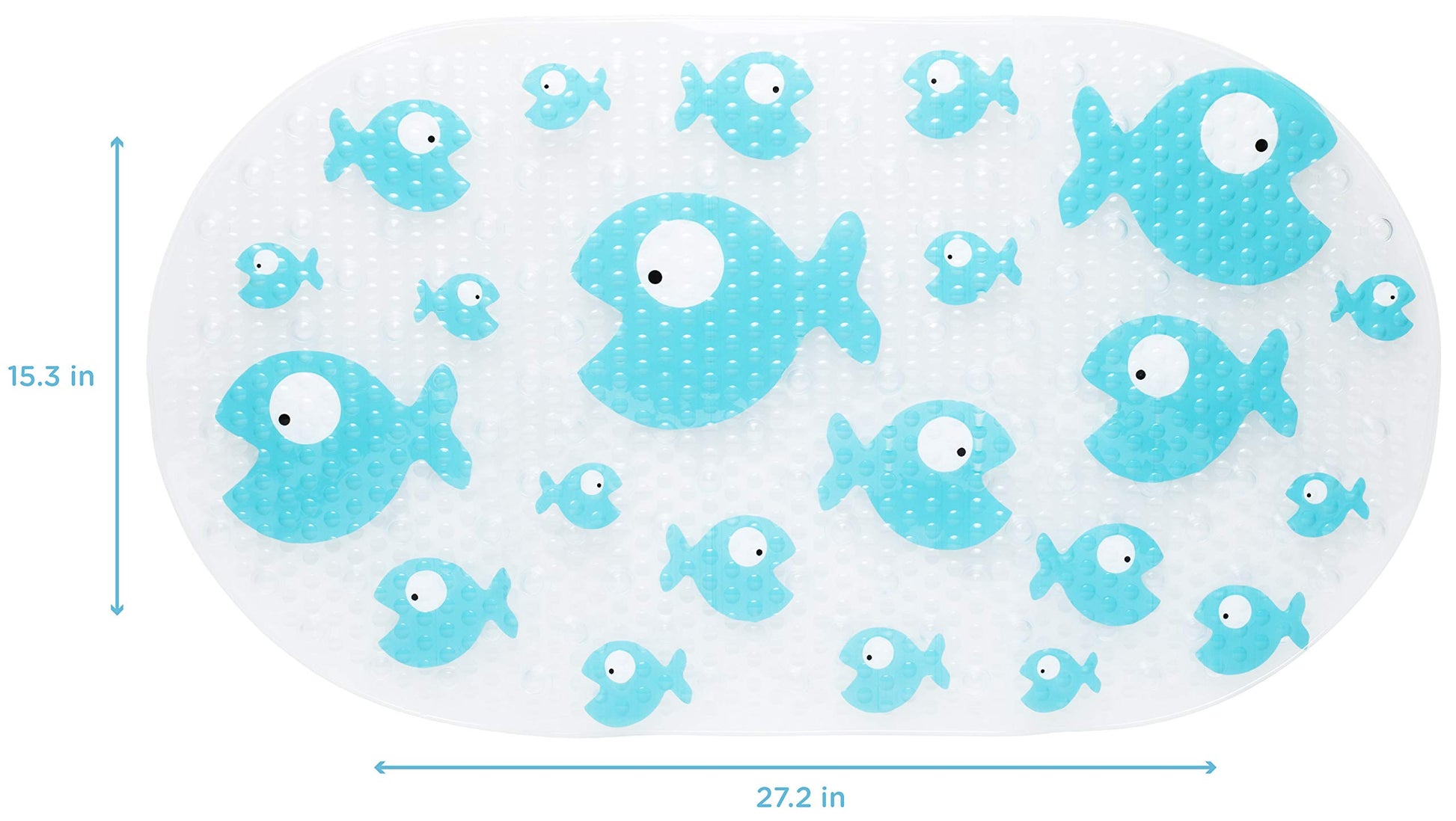 - Q: What design does the bath mat feature? A: The mat features a playful blue fish design, adding an engaging and fun element to your baby's bath time, making it a more enjoyable experience for your little one.