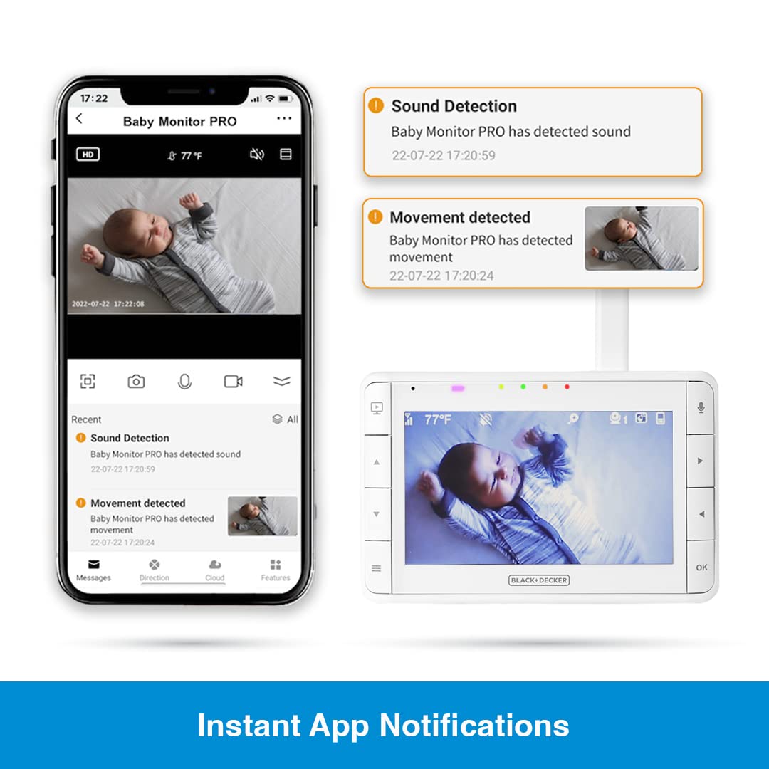 - Q: What kind of notifications can I expect from the baby monitor? A: You will receive instant app notifications when motion is detected, ensuring you stay informed.
