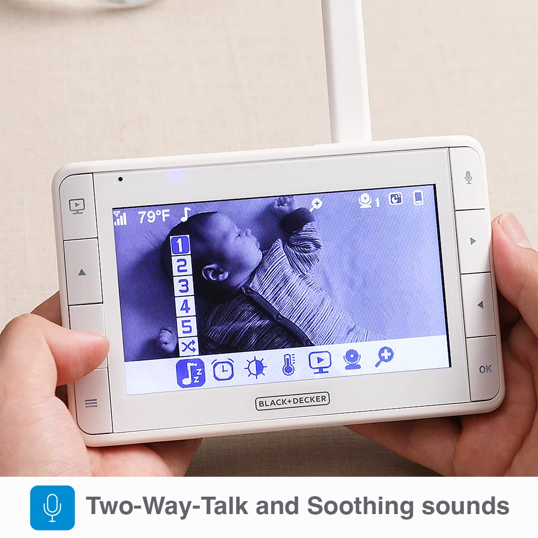 - Q: What is the screen size of the BLACK+DECKER Smart Video Baby Monitor? A: The BLACK+DECKER Smart Video Baby Monitor features a large 5-inch screen for clear visibility.