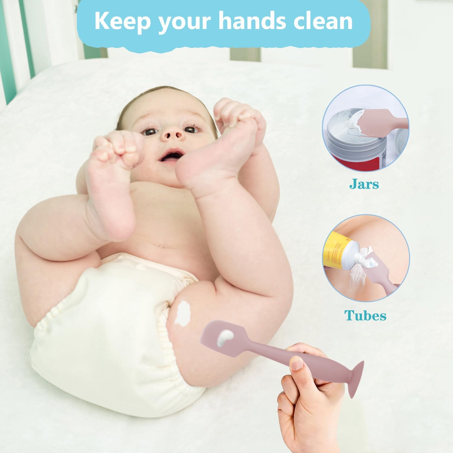• Q: What material is the diaper cream spatula made of? A: The diaper cream spatula is made of 100% soft and flexible silicone, which is safe and gentle for sensitive skin.