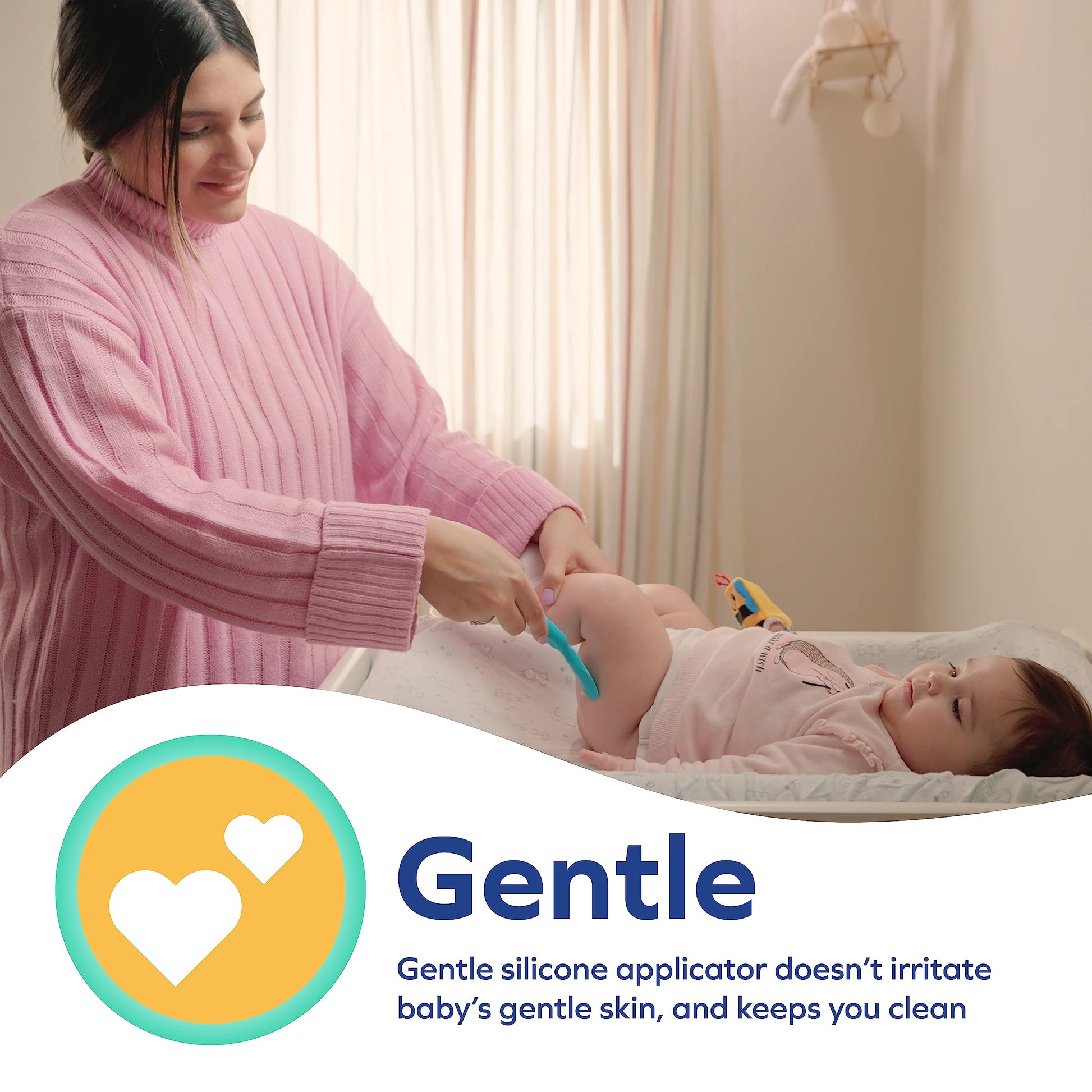 - Q: How does the suction base work? A: The built-in suction base allows you to attach the brush to any flat surface, making it easier to use during diaper changes without worrying about it slipping.