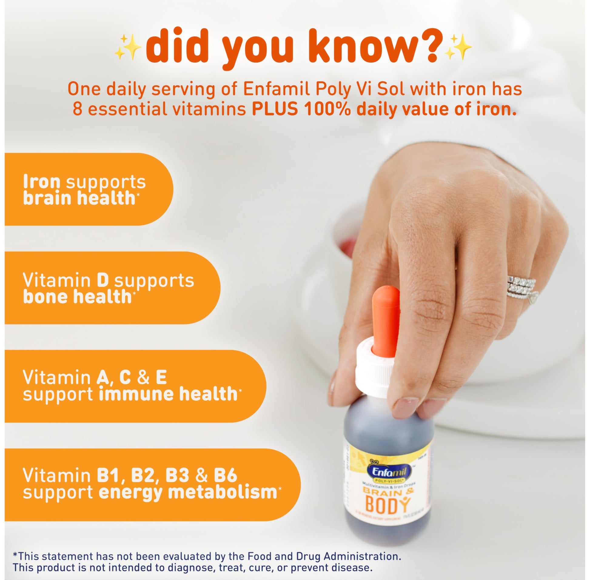 - Q: How does Enfamil Poly-Vi-Sol with Iron help picky eaters? A: This multivitamin helps fill in nutrient gaps in the diets of picky eaters, ensuring they receive essential vitamins for healthy growth.