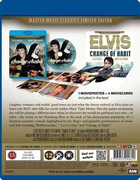 - Q: What is 'Excalibur Change of Habit' about? A: 'Excalibur Change of Habit' is a romantic comedy that features hilarious moments and is highlighted by the King's unforgettable performances of classic rock hits.