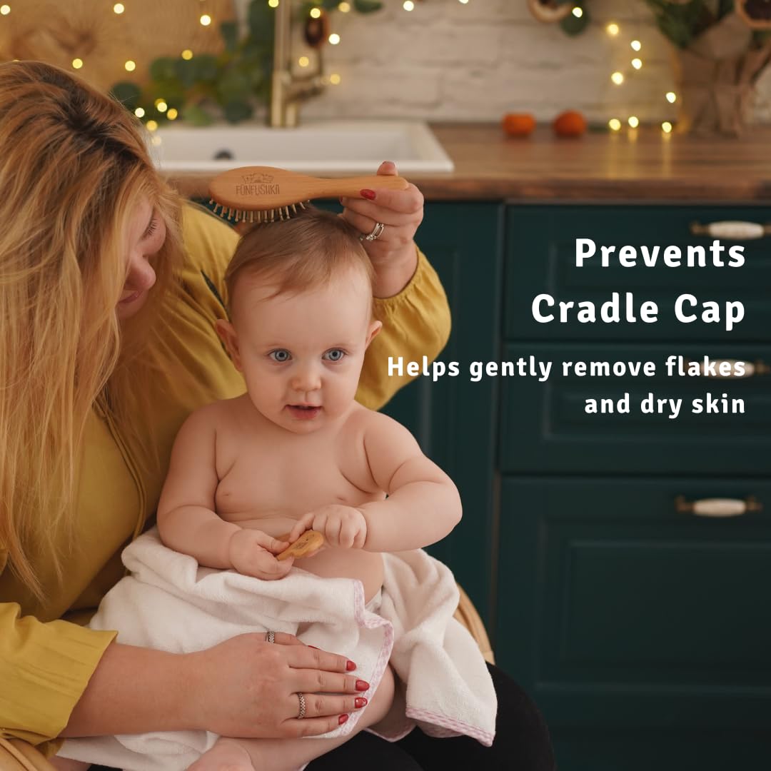 - Q: Is this product safe from harmful chemicals? A: Yes, the FUNFUSHKA Baby Hair Brush Set is handmade from natural materials, ensuring it is free from harmful chemicals.