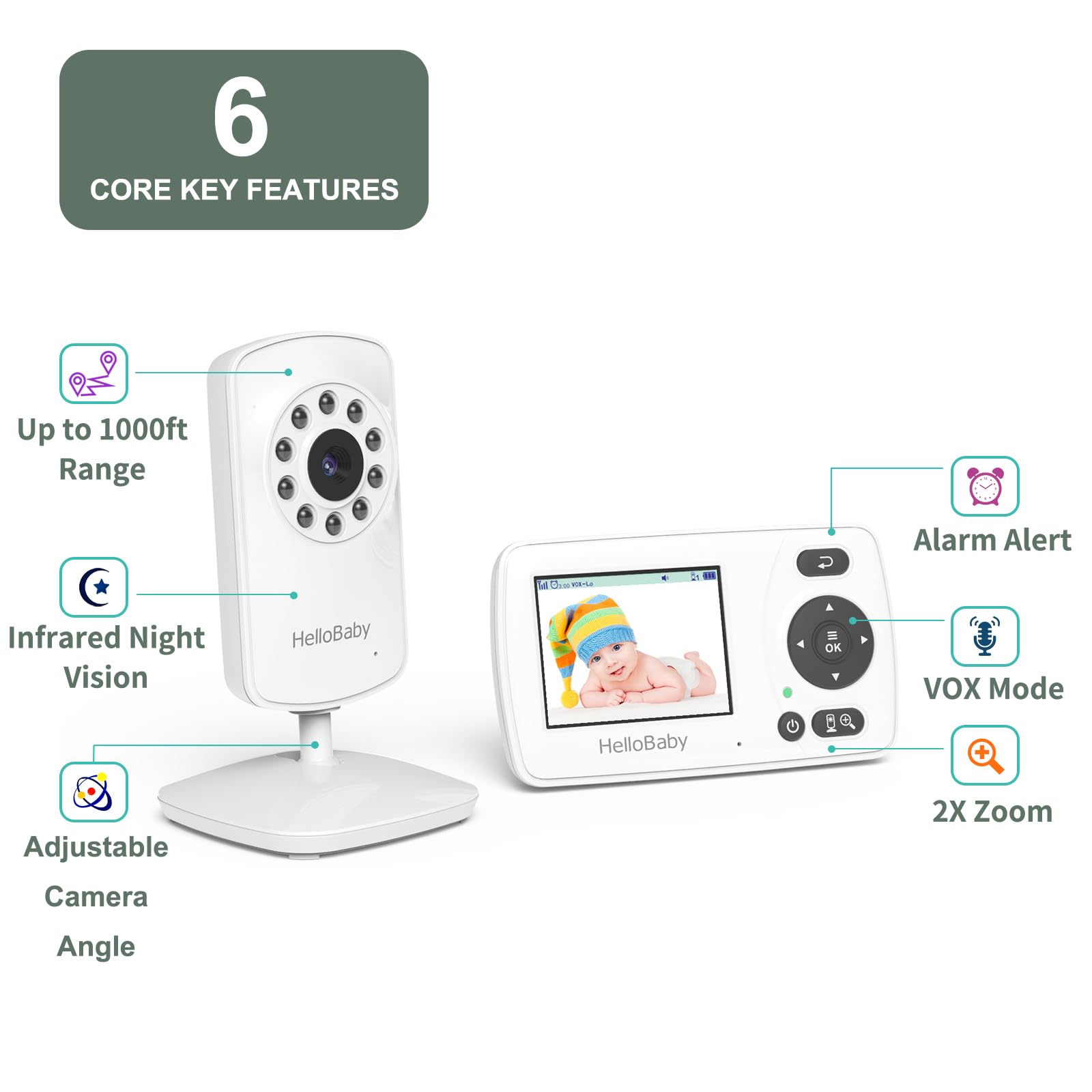 - Q: What makes the Hellobaby HB30 Video Baby Monitor secure? A: The Hellobaby HB30 Video Baby Monitor uses advanced FHSS 2.4GHz technology for secure transmission, ensuring there is no WiFi or app connection, which minimizes hacking risks.
