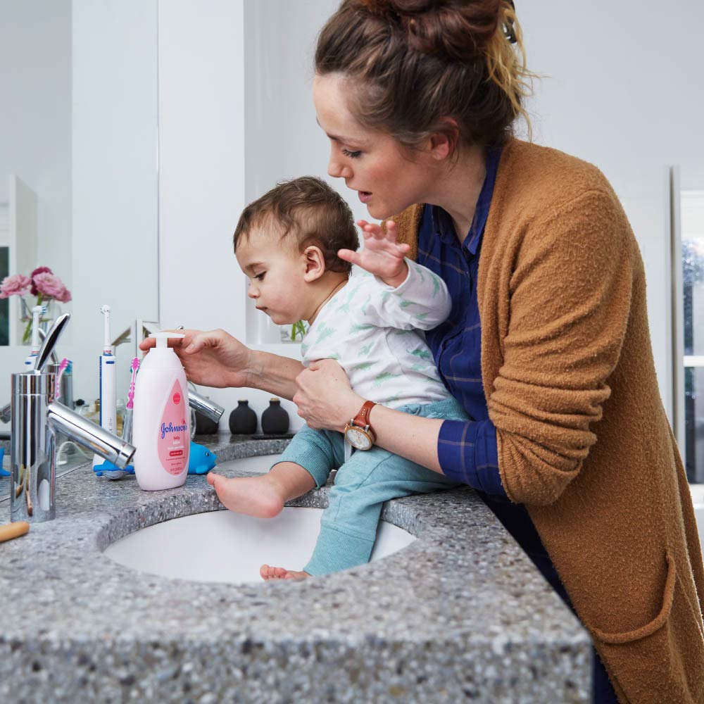 Nourish your little one's skin with Johnson's Baby Lotion. Gentle enough for babies and suitable for the whole family, this moisturizing pink baby lotion with coconut oil hydrates baby's skin for a full 24 hours to keep delicate skin baby soft. Dermatologist- and pediatrician-tested, the improved formula of this pink baby body lotion is designed with input from parents like you. It is hypoallergenic, free of parabens, phthalates, dyes, and harsh fragrances and is 100% gentle. Johnson's Baby Lotion can be used as part of a regular skin care routine by massaging into skin after a bath or any time baby has dry skin.