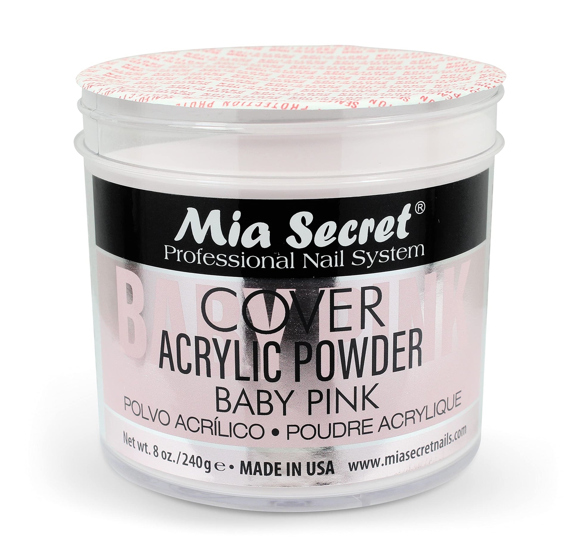 - Q: What size is the Mia Secret Acrylic Powder Cover Baby Pink? A: The Mia Secret Acrylic Powder Cover Baby Pink comes in an 8 oz. container, providing ample product for multiple applications.