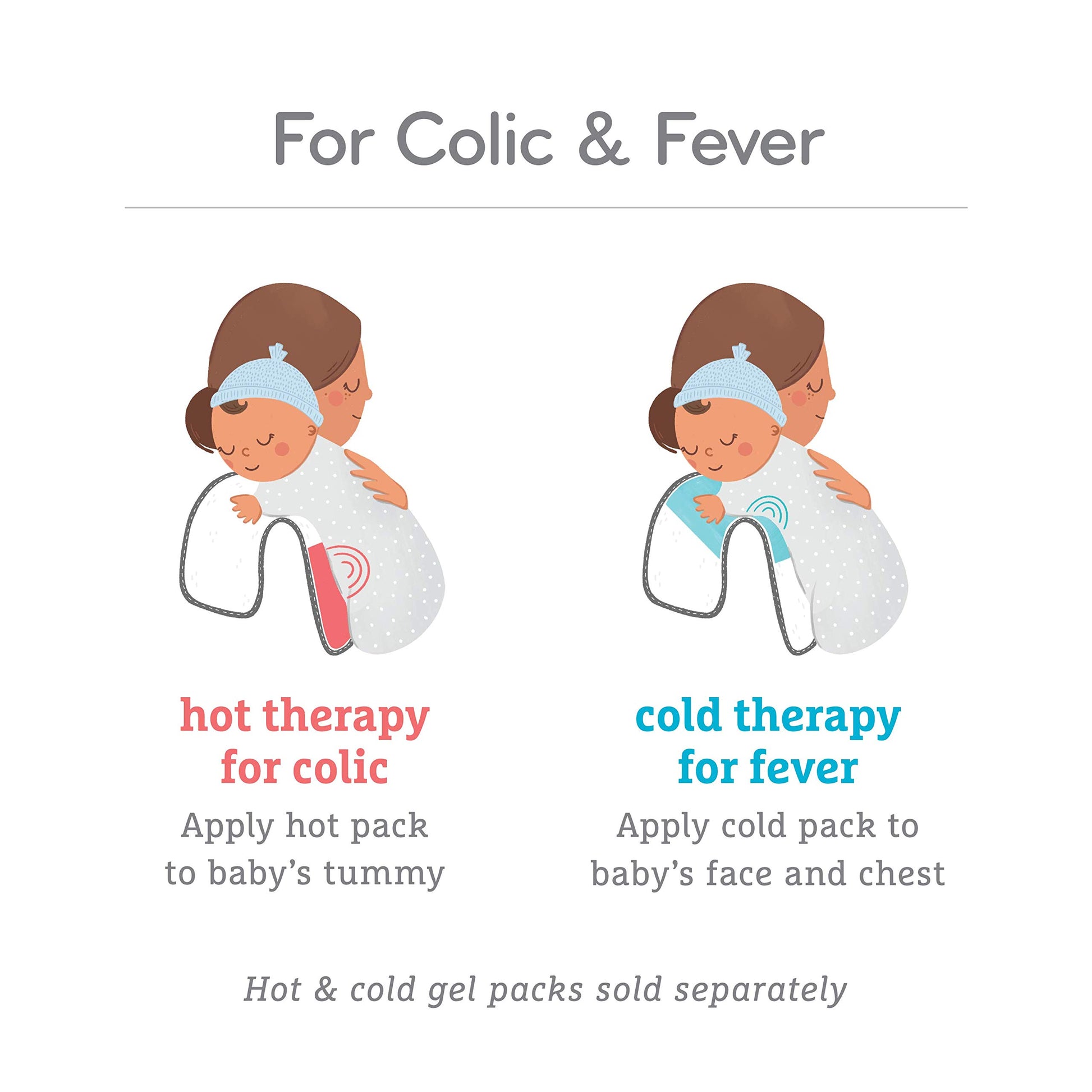 - Q: How should the gel packs be used with the burp cloths? A: Depending on the ailment, you can use either the middle or lower pockets of the burp cloths to localize treatment with the hot or cold packs.