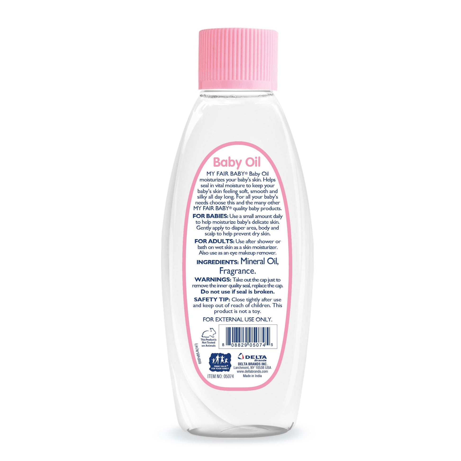 - Q: What is the size of the My Fair Baby Oil bottle? A: My Fair Baby Oil comes in a convenient 7-ounce bottle, making it easy to handle and store.