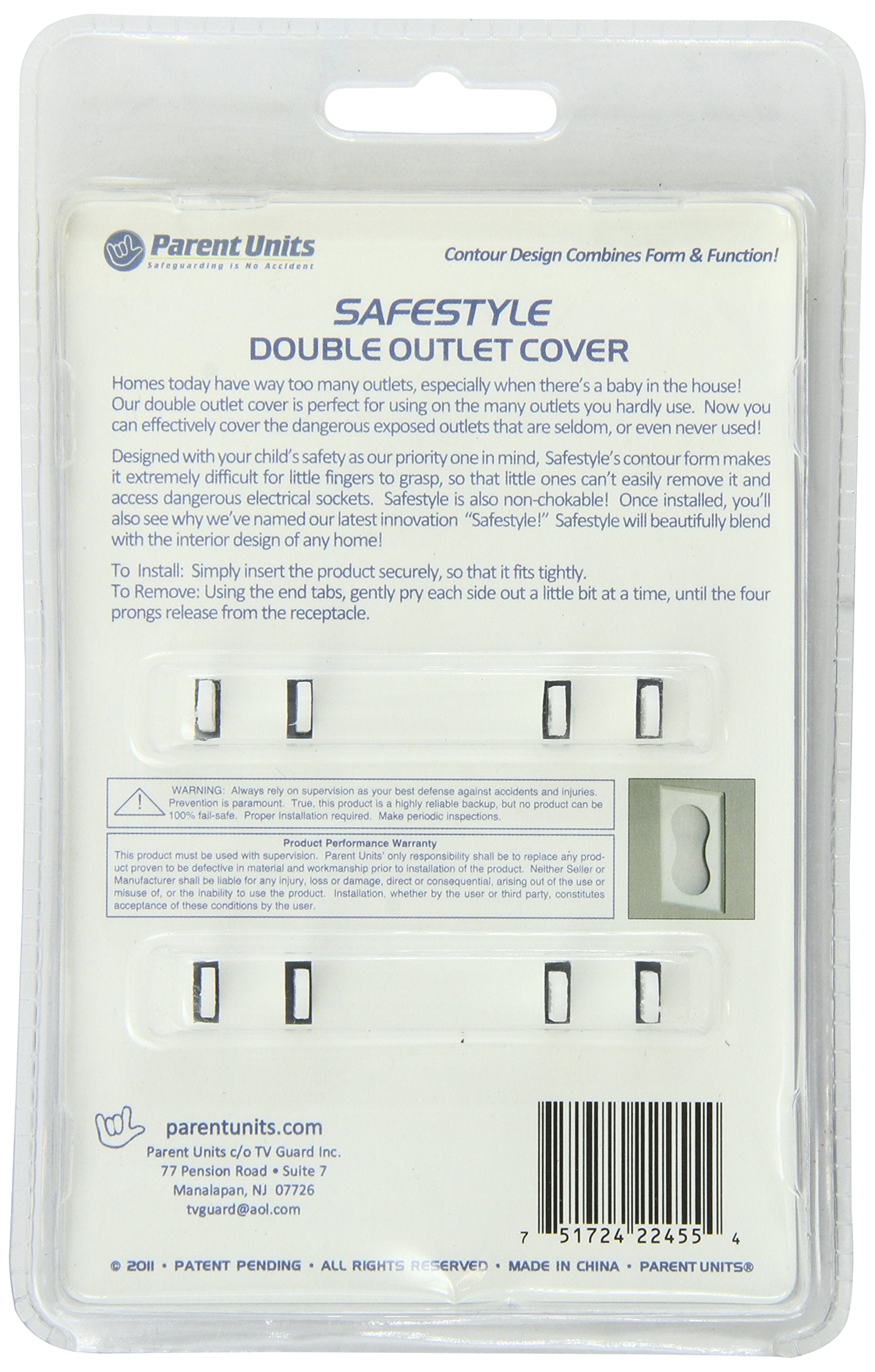 - Q: What materials is the Safestyle Double Outlet Cover made from? A: The Safestyle Double Outlet Cover is designed with child safety in mind, but specific material details are not provided. It is non-chokable and safe for use in homes with children.