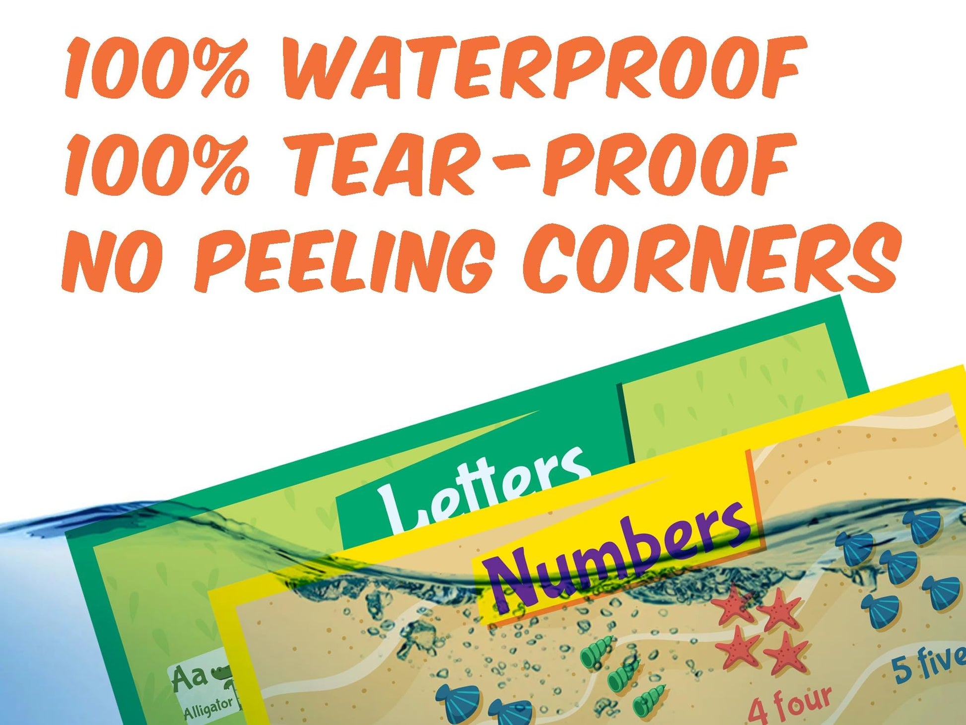 5 Placemats, Educational Placemats, 100% Waterproof & Reusable, Toddler Placemats, Kids Placemats, Children Placemats, No Sharp Peeling Corners. Tear-Proof. Scuba Divers use this product underwater. Other competitors placemats cannot be submerged underwater or used with hot water. Reusable Placemats - Colorful and Simple Design for children - Artwork designed by a certified gifted teacher - Simply wipe it clean and use it over and over again. Meal time can be educational for children and easier to clean for parents. It also makes an excellent gift. 100% made in the USA!