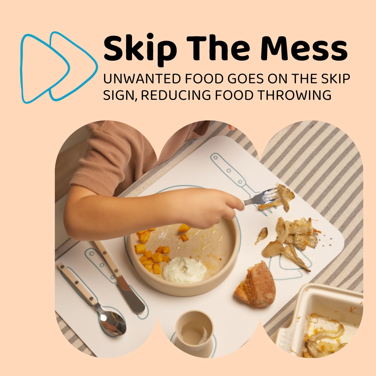 - Q: Can this placemat help with my child's mealtime habits? A: Yes, the APLAINR Montessori Placemat encourages healthy eating habits by featuring a unique 'skip sign' for placing unwanted food instead of throwing it away.
