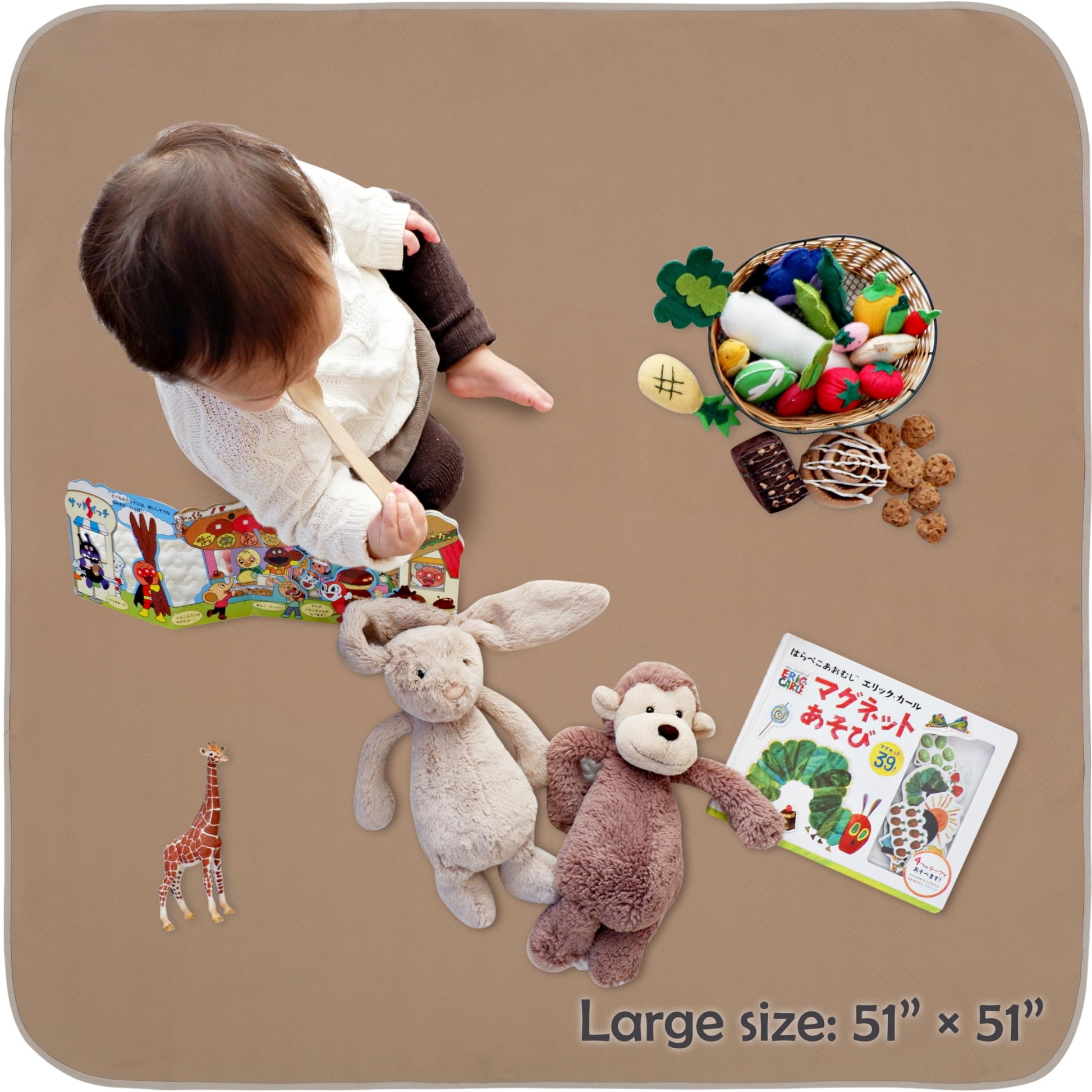 - Q: What is the size of the Baby Splat Mat? A: The Baby Splat Mat measures 51 inches by 51 inches, making it extra large for optimal coverage during mealtime and playtime.