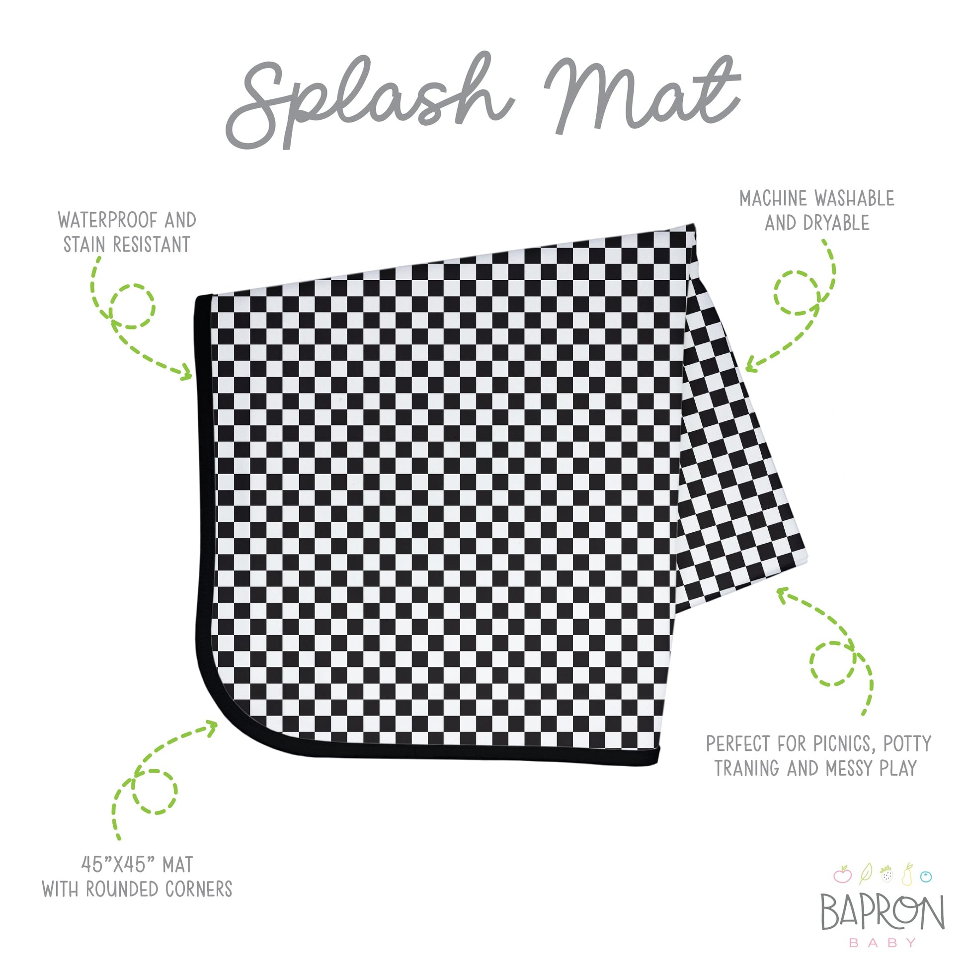 Bapronbaby Black Checkerboard Splash Mat - Waterproof Catch-All For Under High Chairs, Floors, Tables, Playtime Or Arts & Crafts