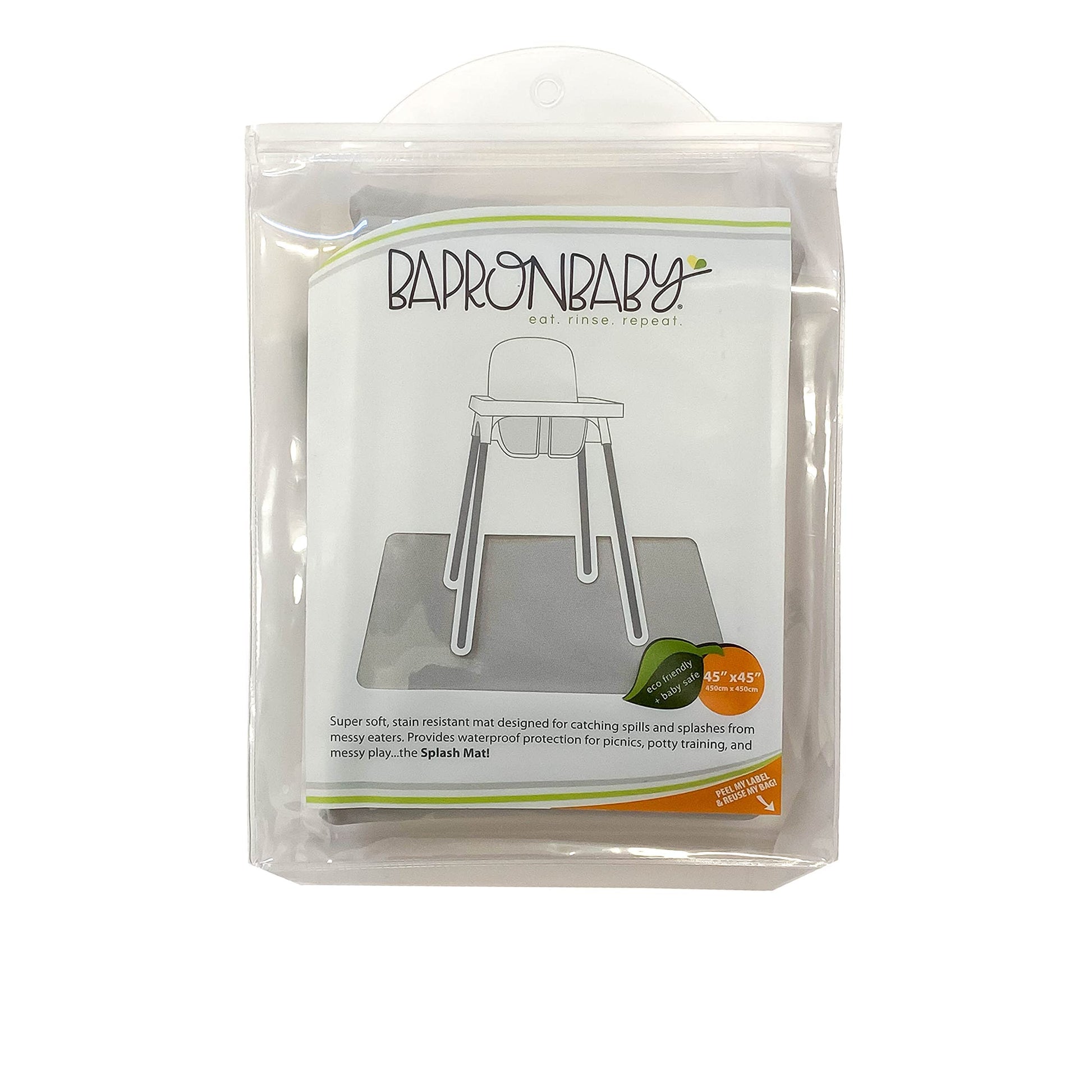 - Q: How do I clean the BapronBaby Splash Mat? A: The splash mat can be wiped clean for quick clean-ups and is also machine washable for deeper cleaning. Tumble dry on low to medium heat.