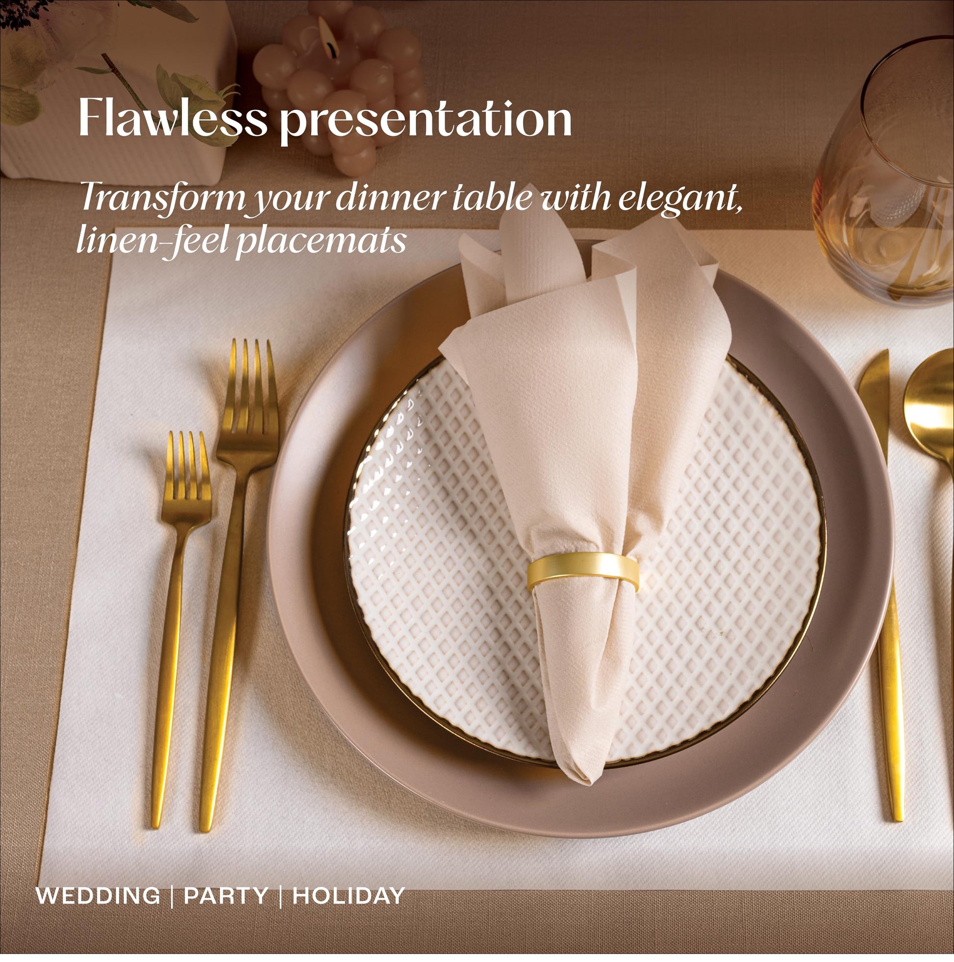 • Q: Are these placemats suitable for formal events? A: Yes, these elegant paper placemats are perfect for formal events, intimate dinners, and special celebrations.