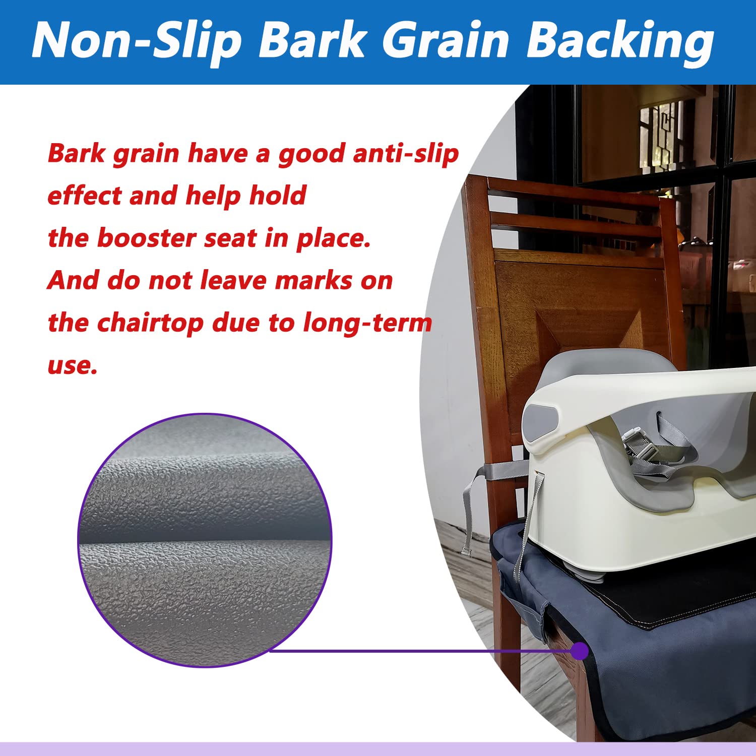 - Q: What features help keep the booster seat in place? A: The cover includes a non-slip bark grain backing, which helps to keep the booster seat securely in place during meals.