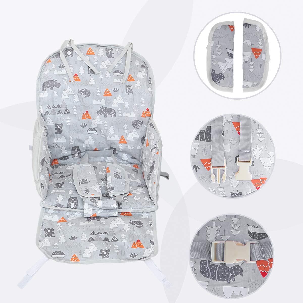 -Our high chair cushions are made of natural high-quality cotton material. Soft and comfortable. The backrest is 39 cm / 15.35 inches long, the bottom is 26.5 cm / 10.4 inches long, and the bottom is 30 cm / 11.8 inches wide. Let your baby feel very comfortable on the hard high chair, (Compared with traditional cushions, our high chair cushions are smaller in size. Before buying, please consider whether our cushion is suitable according to the style and size of your high chair. Thanks!). -When there are few stains after meals, wipe with a damp cloth. When the mat is very dirty and needs cleaning, it is recommended to wash it by hand. This can be washed more quickly, and can be dried after washing. After drying, gently tap the mat with your hands to keep it in its best condition. -The high chair cushion has a cute Grey animal pattern. The cute graphic design makes babies love it and makes babies look cute. The colors are bright and charming. Add some color to the ordinary high chair. -Both sides of the baby high chair cushion have comfortable cushion protection design, which can provide the baby with a better wrapping and more comfortable feeling on the high chair. In addition, the high chair cushion also has a comfortable seat belt design (this design is suitable for some high chairs). Two comfortable seat belts with cushions can prevent infants from moving and falling in the high chair, making it safer to use. -Wide range of applications: Our high chair covers are only suitable for some high chairs and baby dining chairs. There are many high chairs on the market. Our high chair cushion is specially designed for some of the high chairs. The package includes: 1 x High Chair Pad