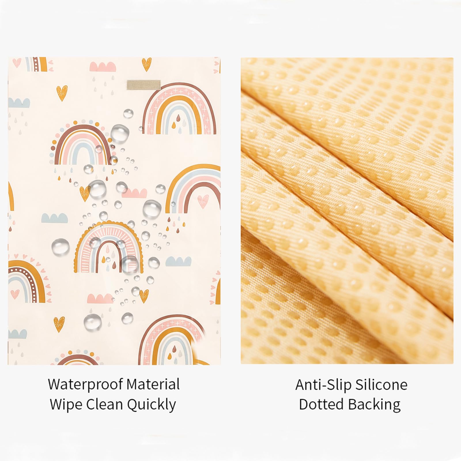 - Q: What is the size of the Insular Baby Splat Mat? A: The Insular Baby Splat Mat measures 51 inches by 51 inches, providing ample space for messes under a high chair or during arts and crafts.