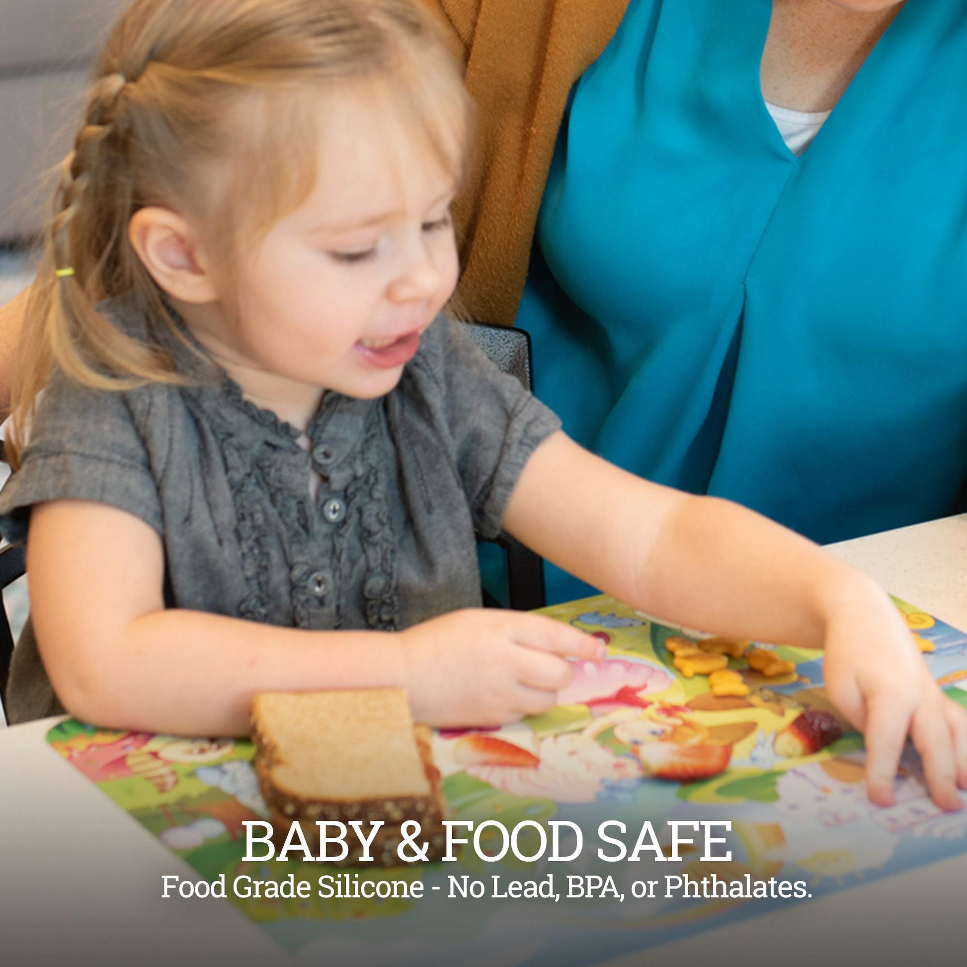 - Q: Can these placemats help with my child's development? A: Yes, these educational placemats assist in language development and help children learn names, sounds, colors, and more while they eat.