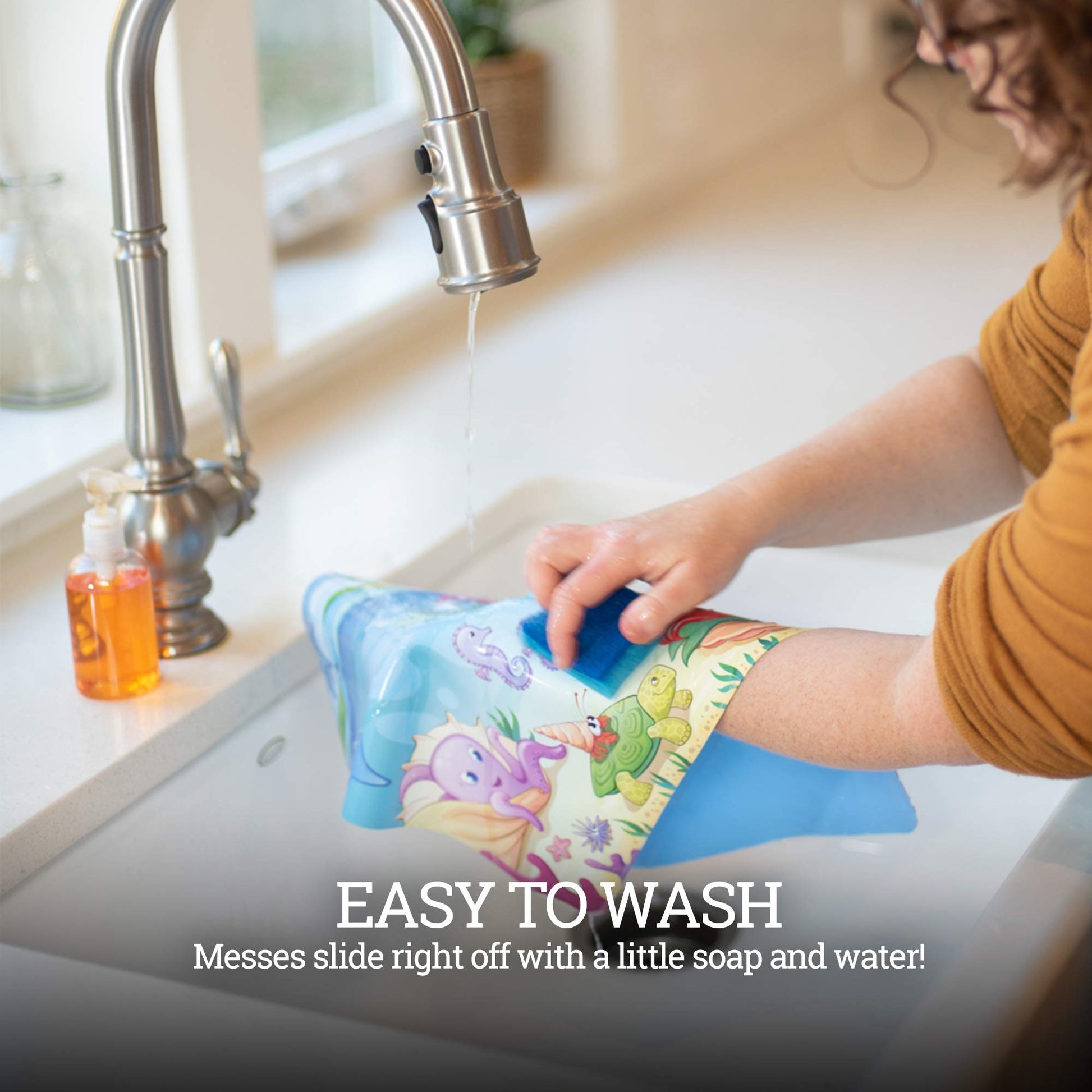 - Q: What are the dimensions of the placemats? A: Each Klean Kids placemat measures approximately 15.7 inches by 11.8 inches, providing ample space for your child's meals.